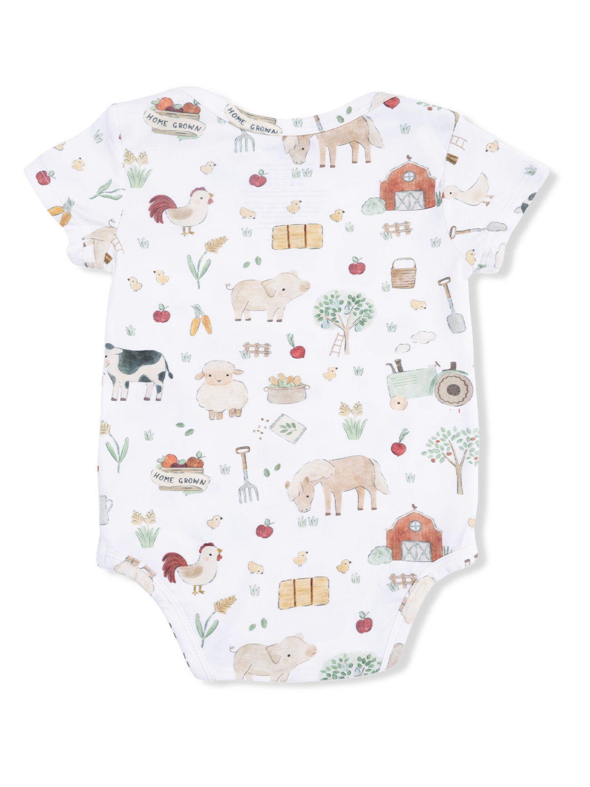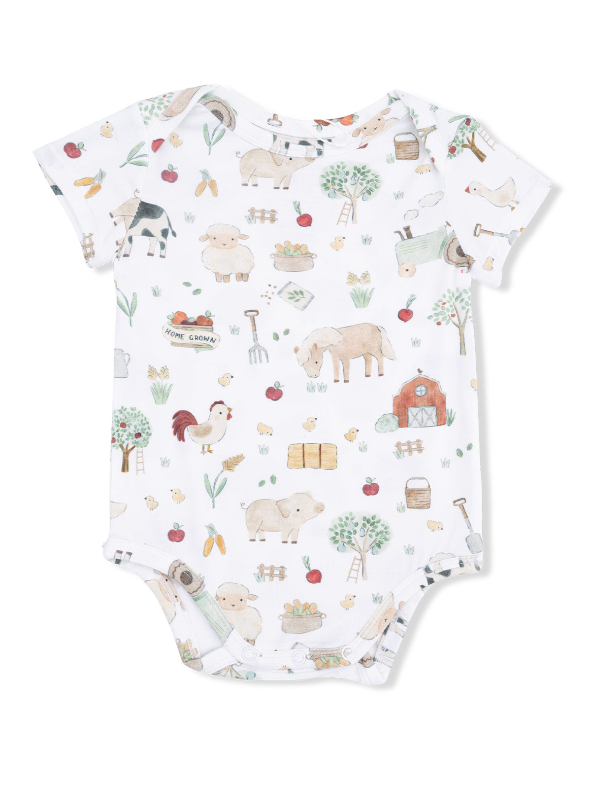 Short Sleeve Bodysuit, Cute Farm Animals Uni