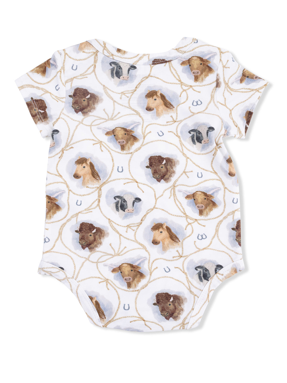 Short Sleeve Bodysuit, Farm Animals Rope Cameos