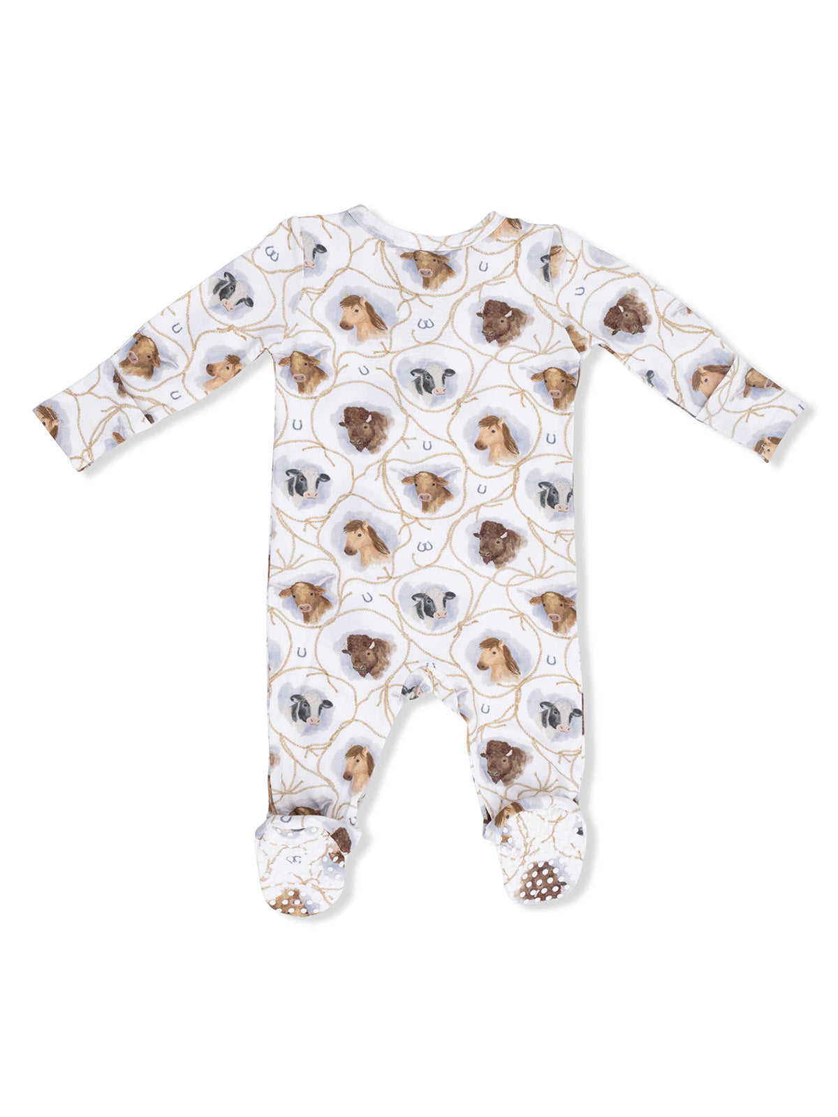 2-Way Zip Footie, Farm Animals Rope Cameos
