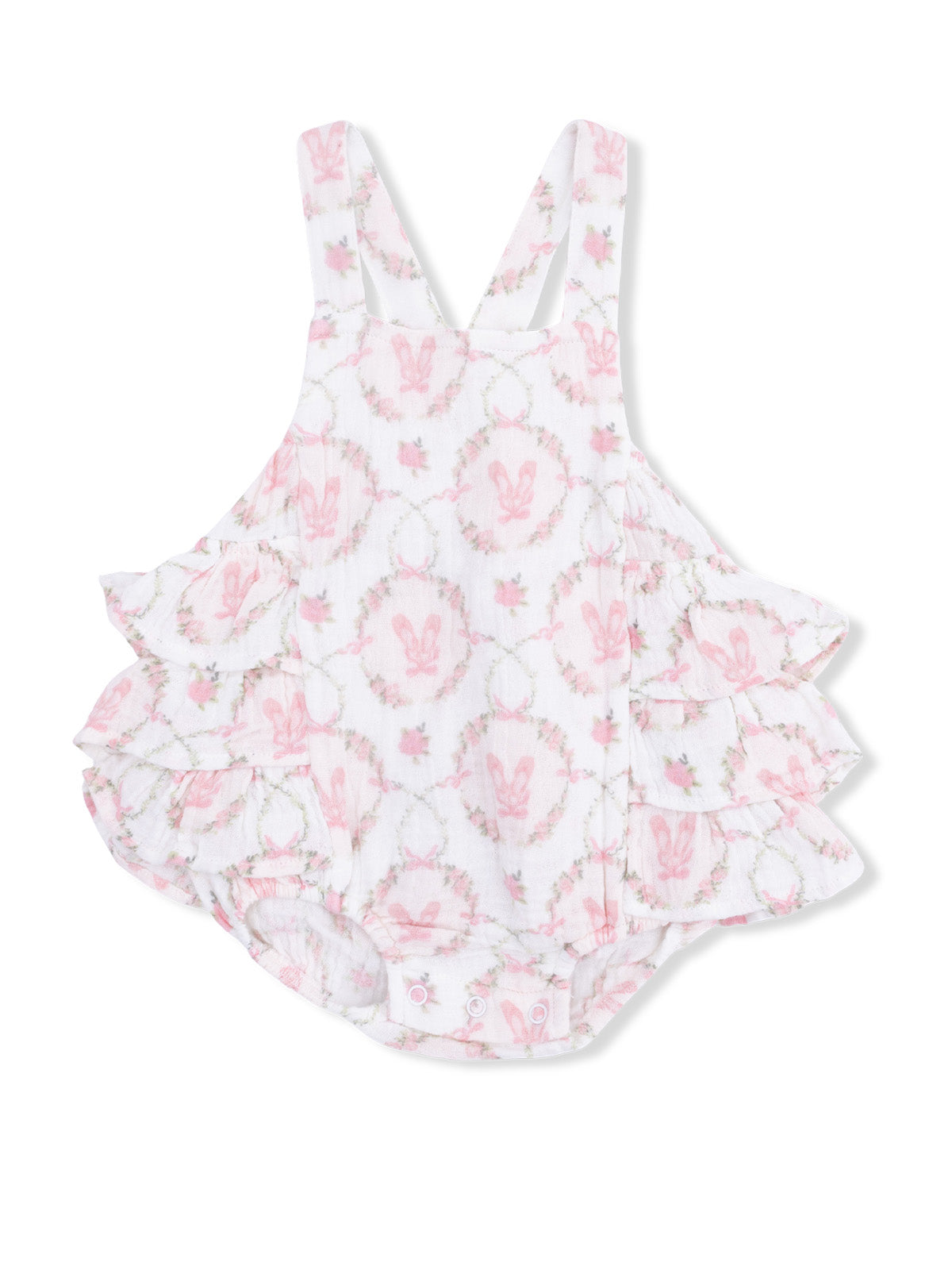 Ruffle Bubble Sunsuit, Yellow Country Roses
