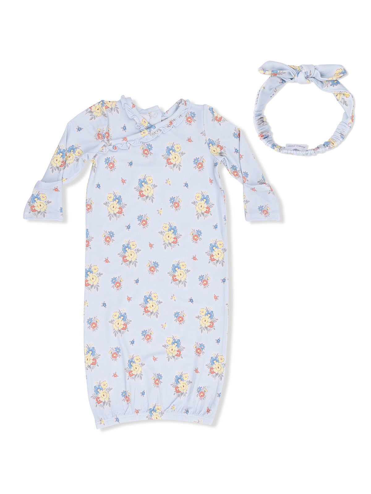 Kimono Gown & Knot Headband, Country Stitch Floral