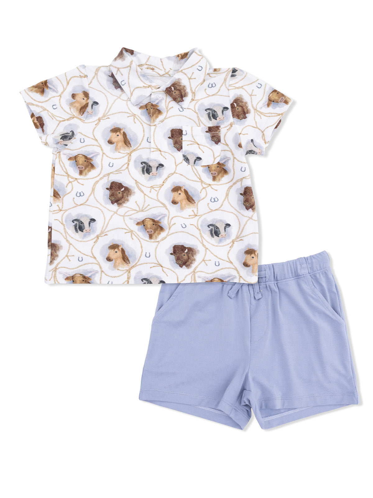 Polo Shirt & Casual Short Set, Farm Animals Rope Cameos