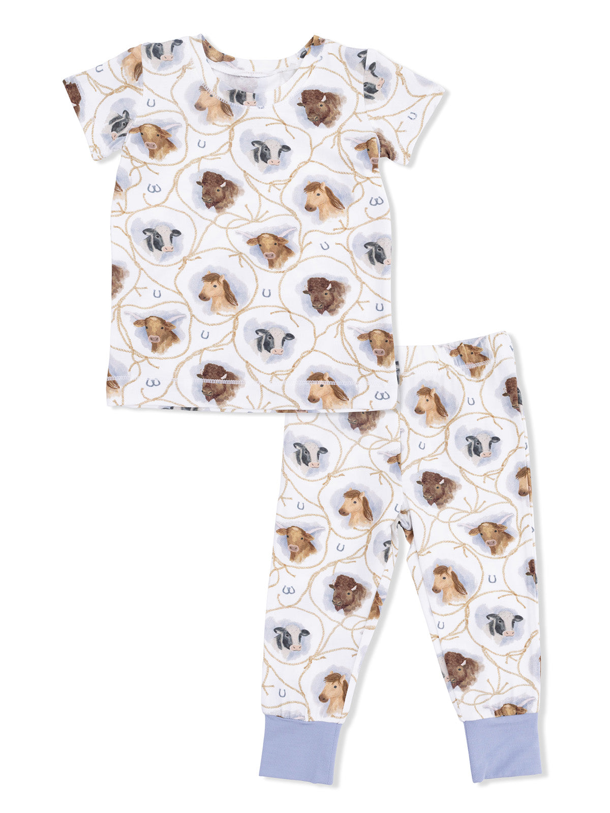 Short Sleeve Loungewear Set, Farm Animals Rope Cameos