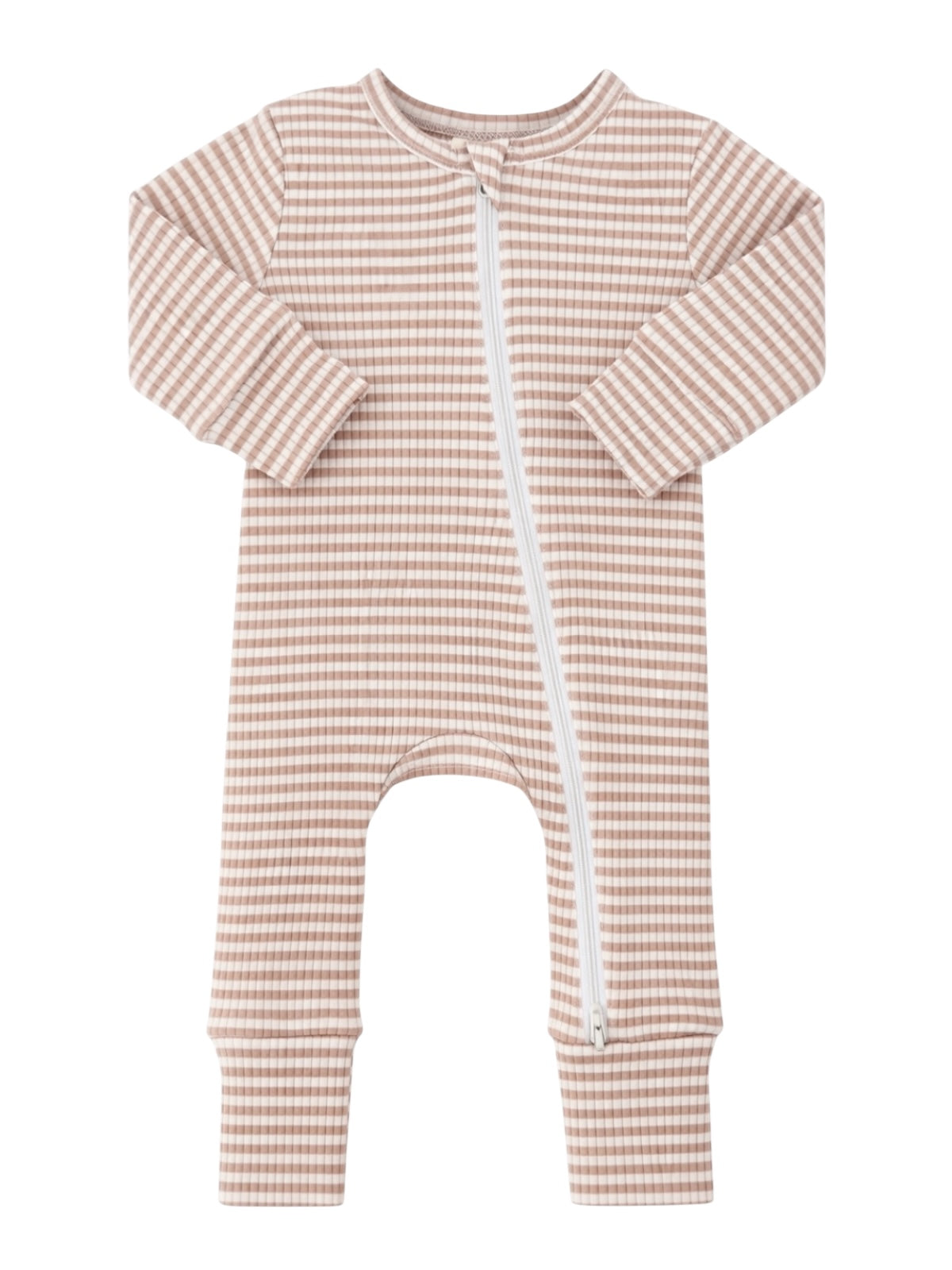 Biscuit Stripe / Organic 2-Way Zip Romper