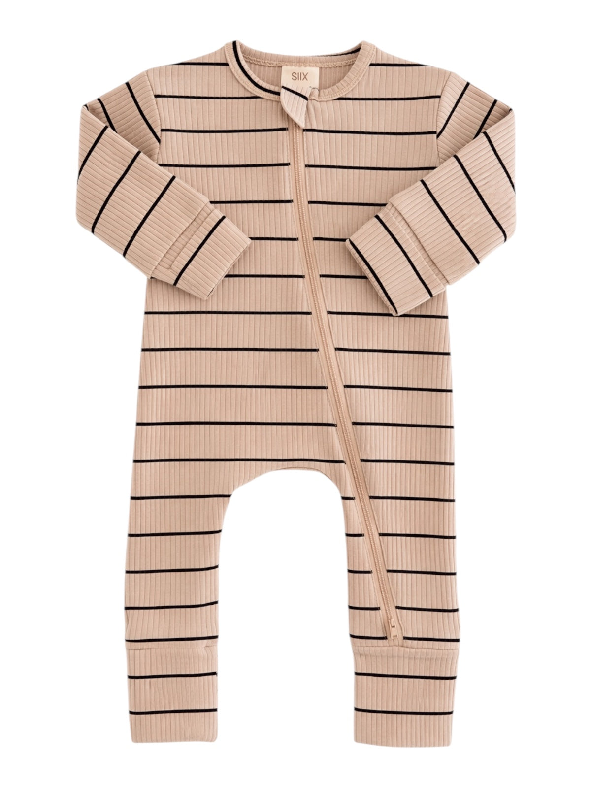 Tan/Black Stripe / Ribbed 2-Way Zip Romper