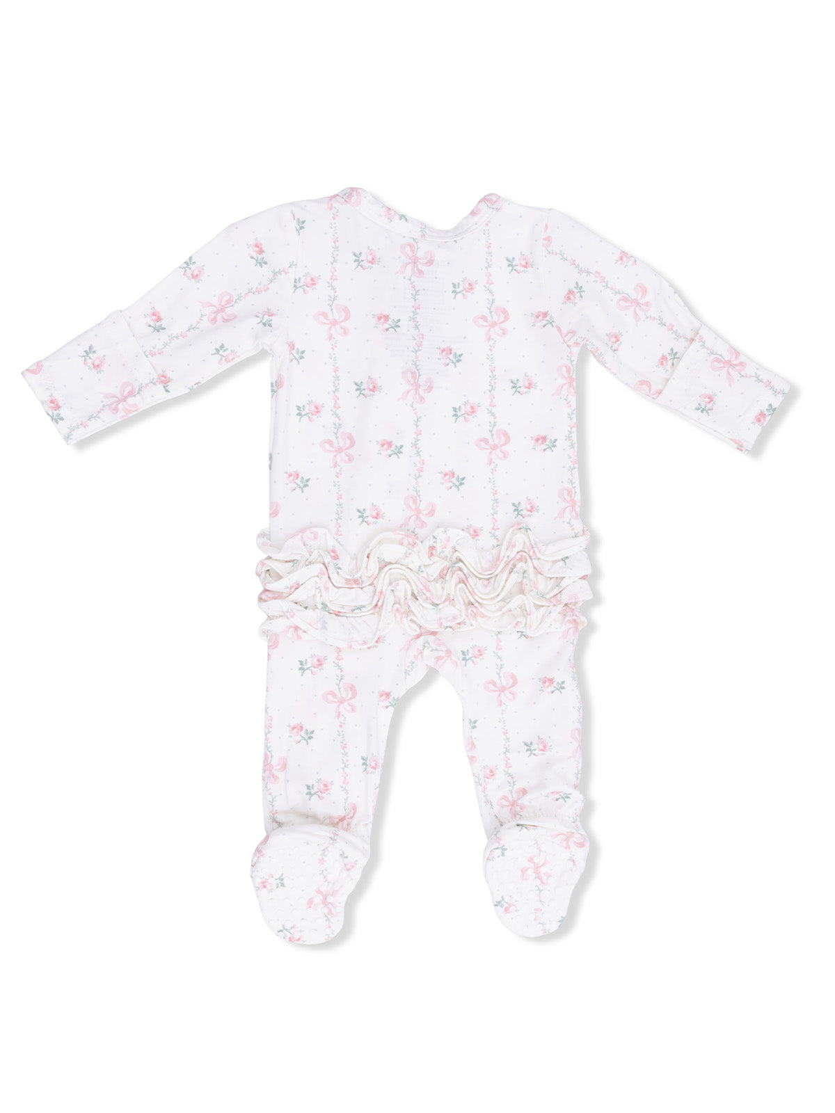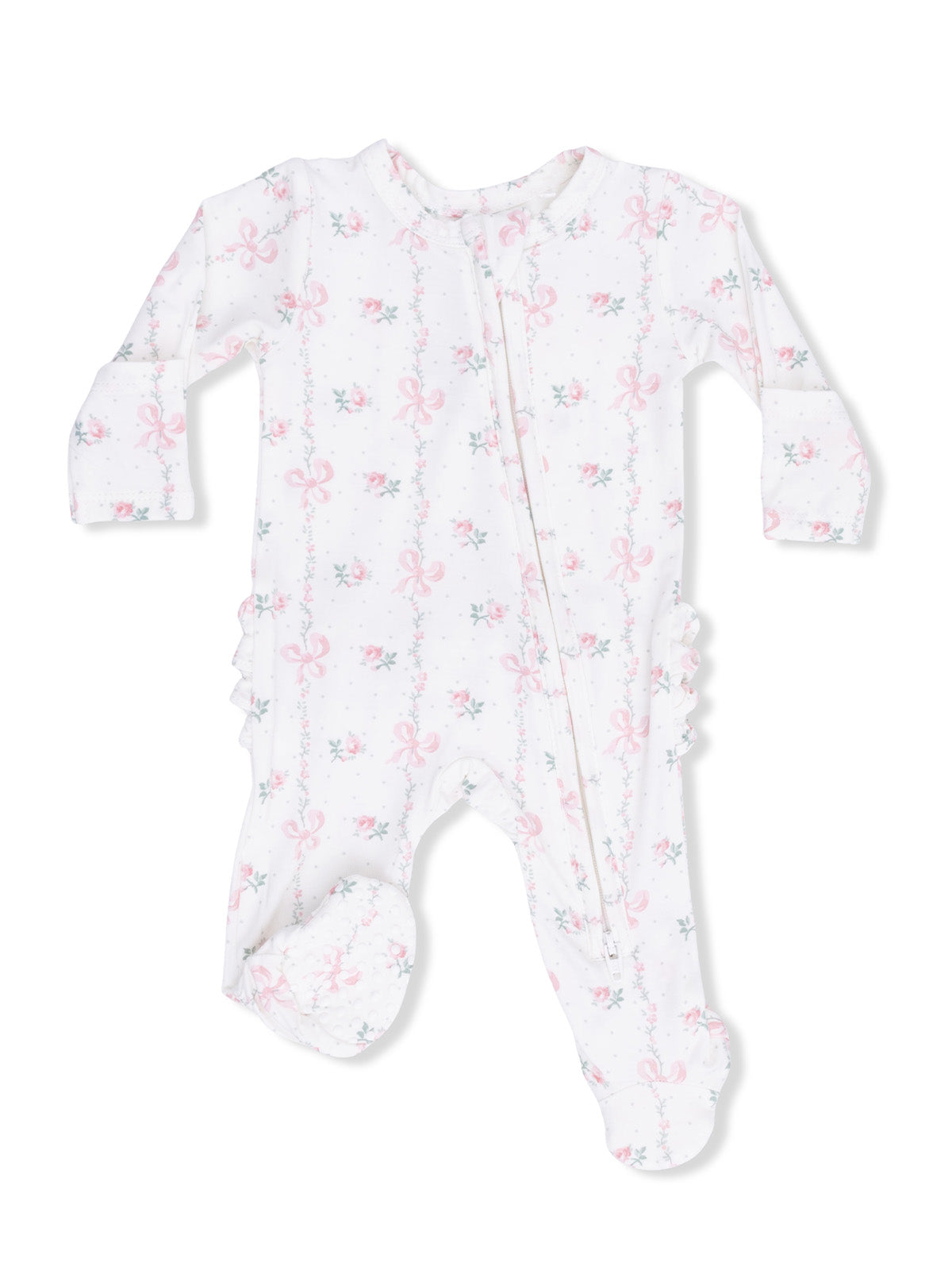 2-Way Zip Ruffle Footie, Dainty Buds and Bows