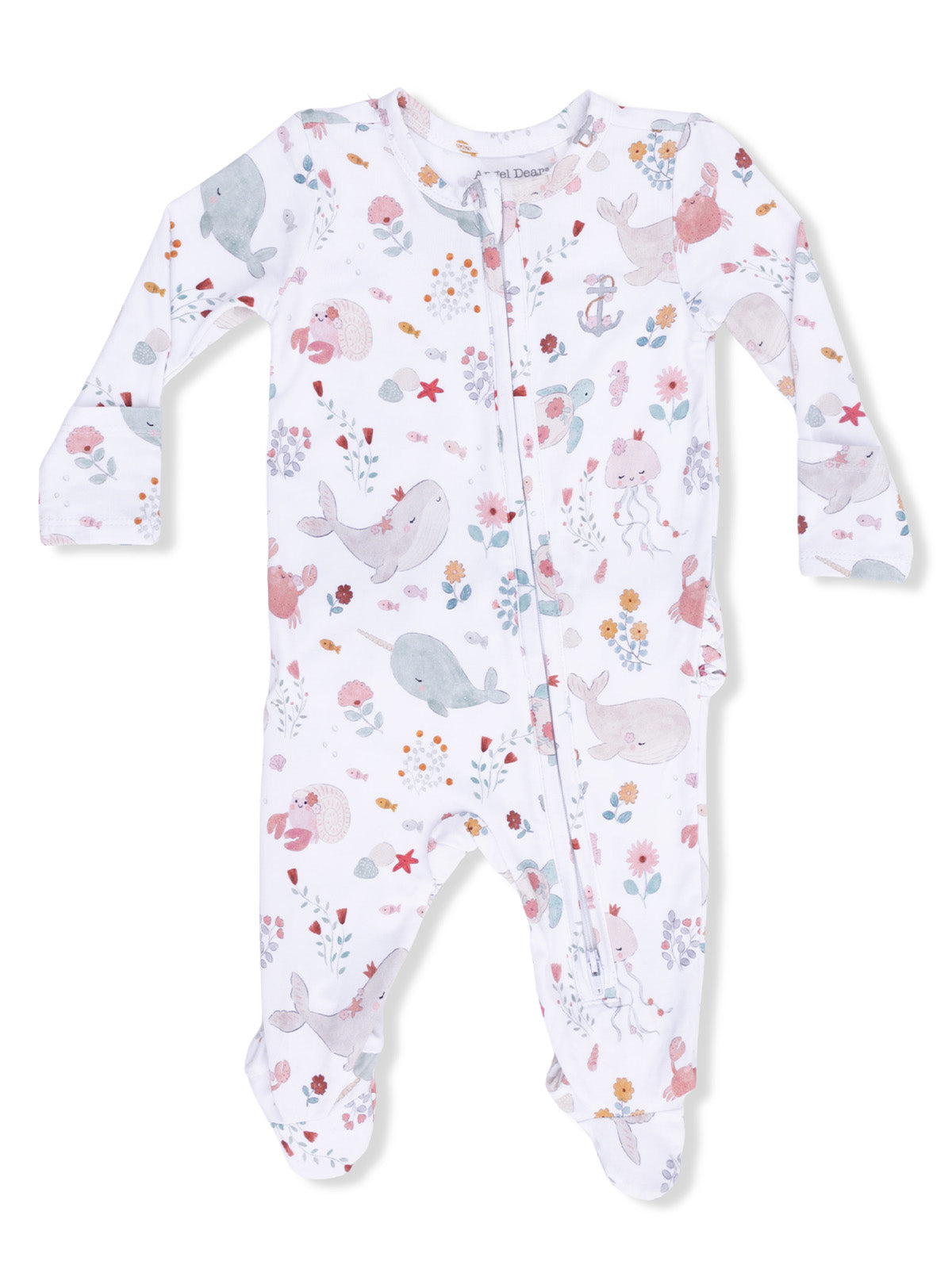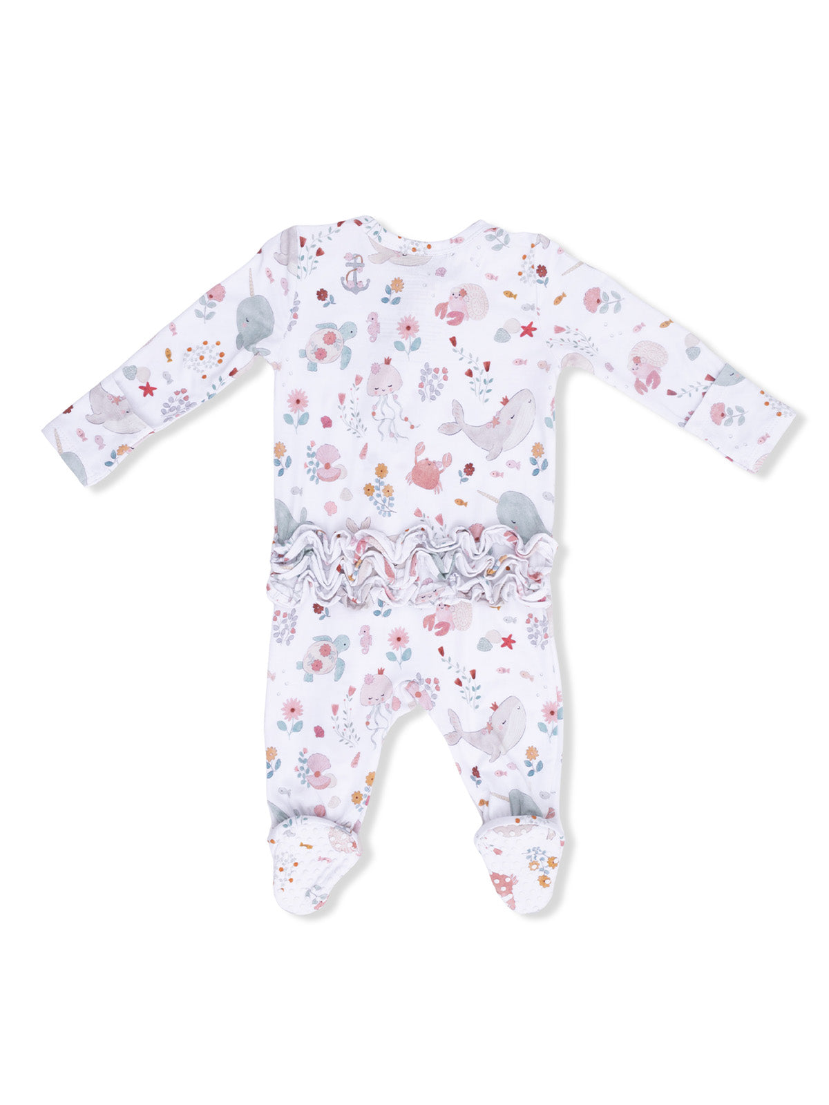2-Way Zip Ruffle Footie, Garden Sea Creatures