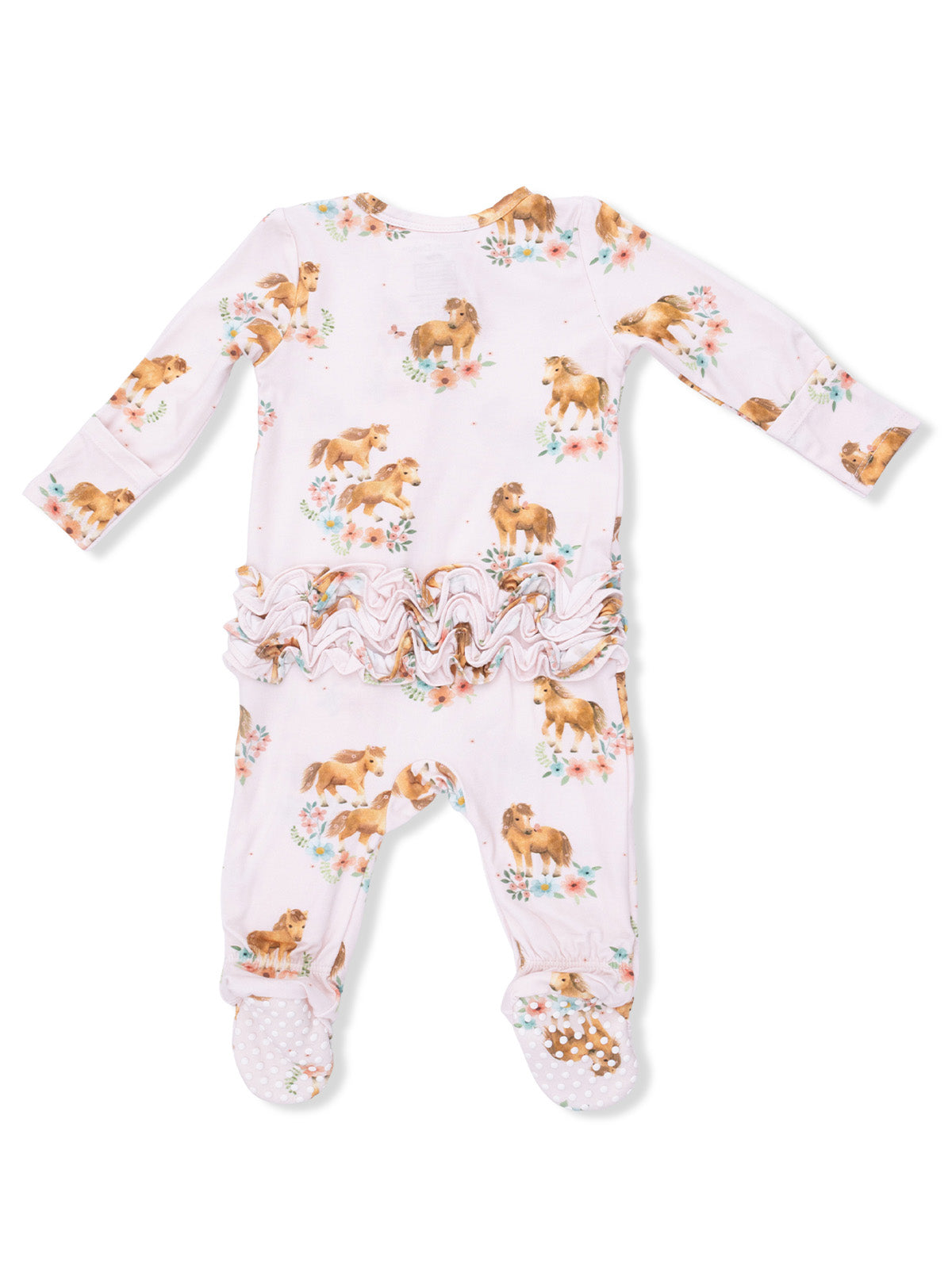 2-Way Zip Ruffle Footie, Vintage Cowgirls