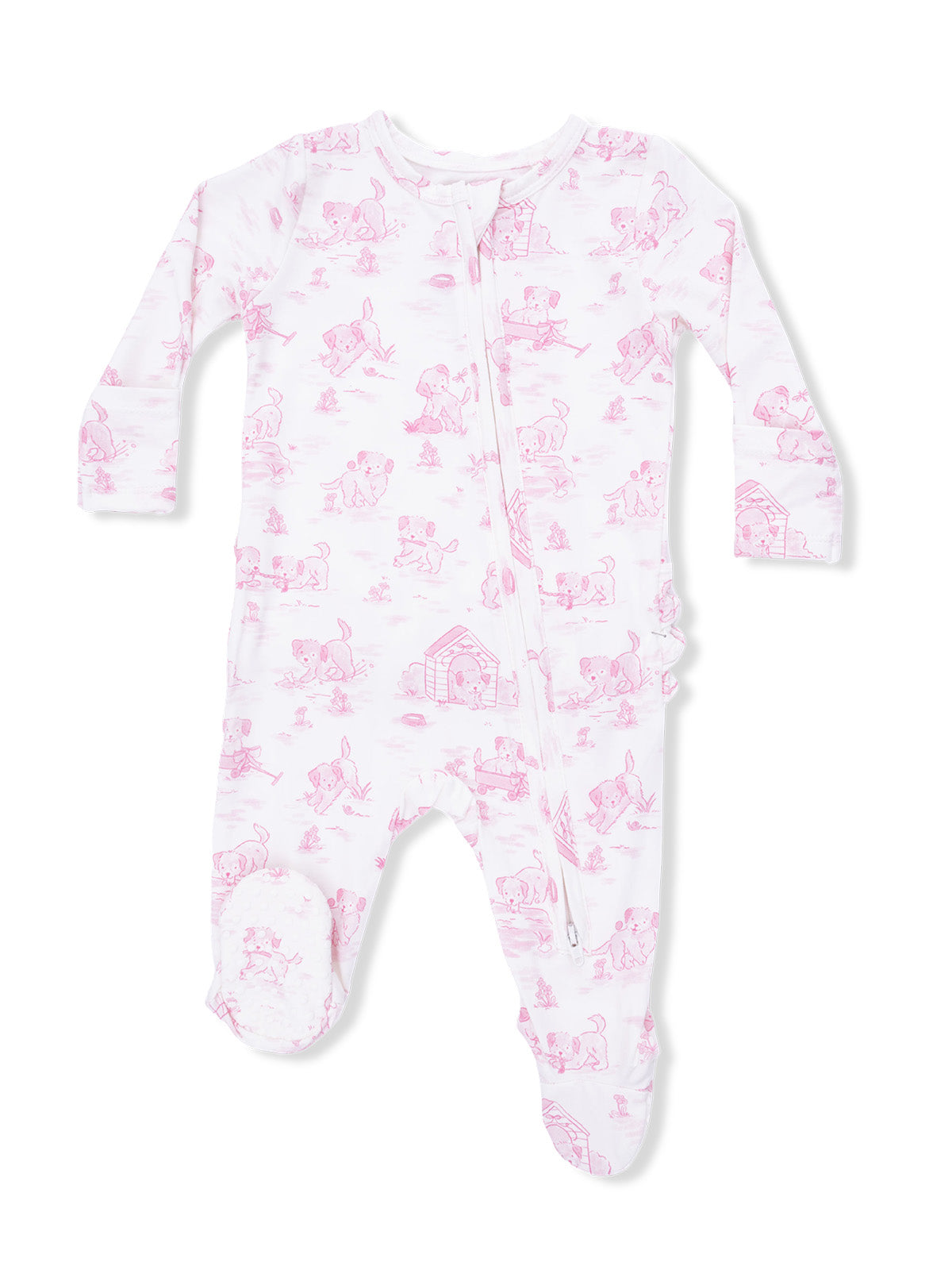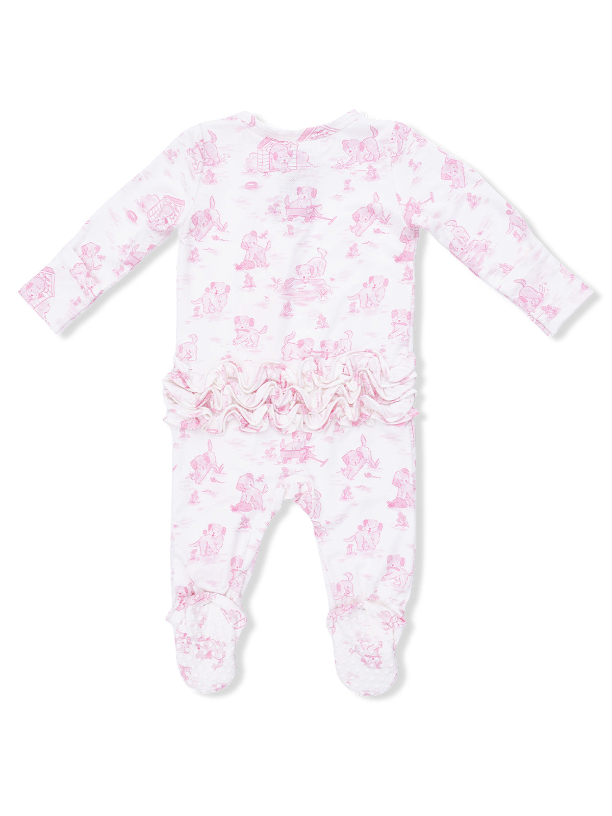 2-Way Zip Ruffle Footie, Puppy Toile Pink