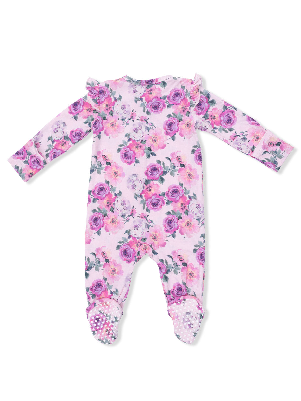 2-Way Zip Ruffle Sleeve Footie, Rose Abundance