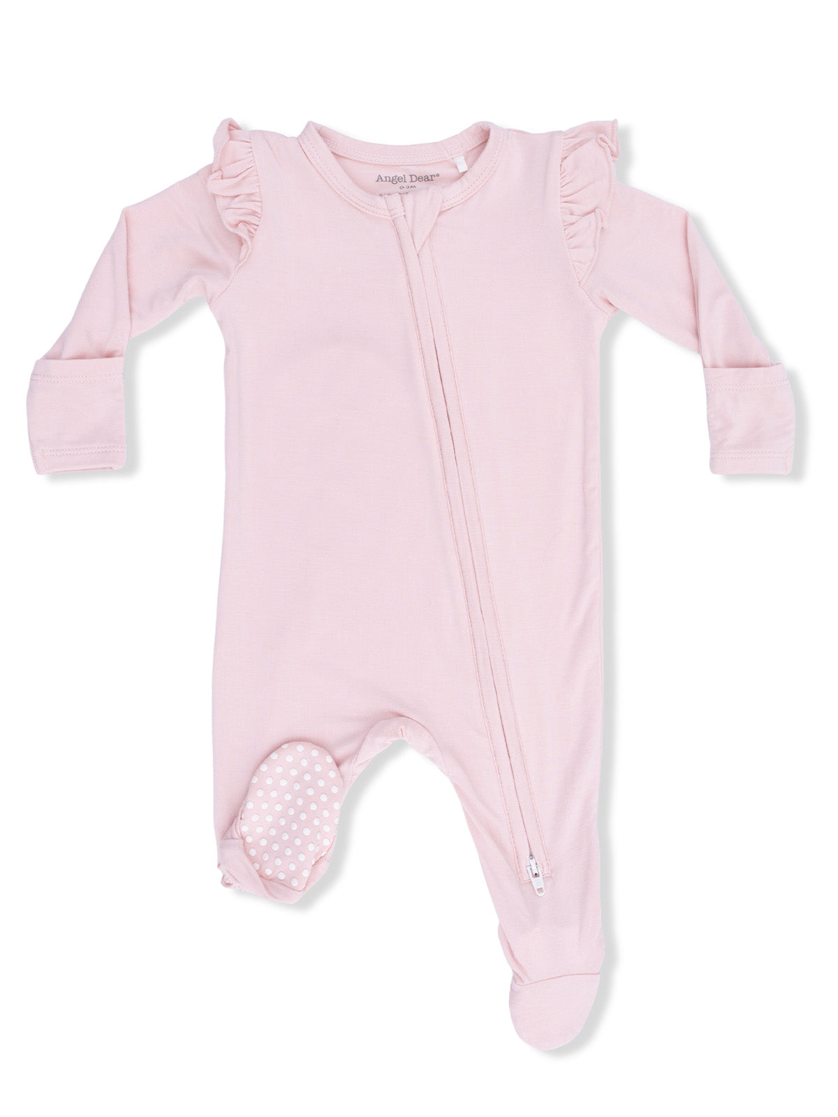 Organic Waffle 2-Way Zip Ruffle Footie, Blush