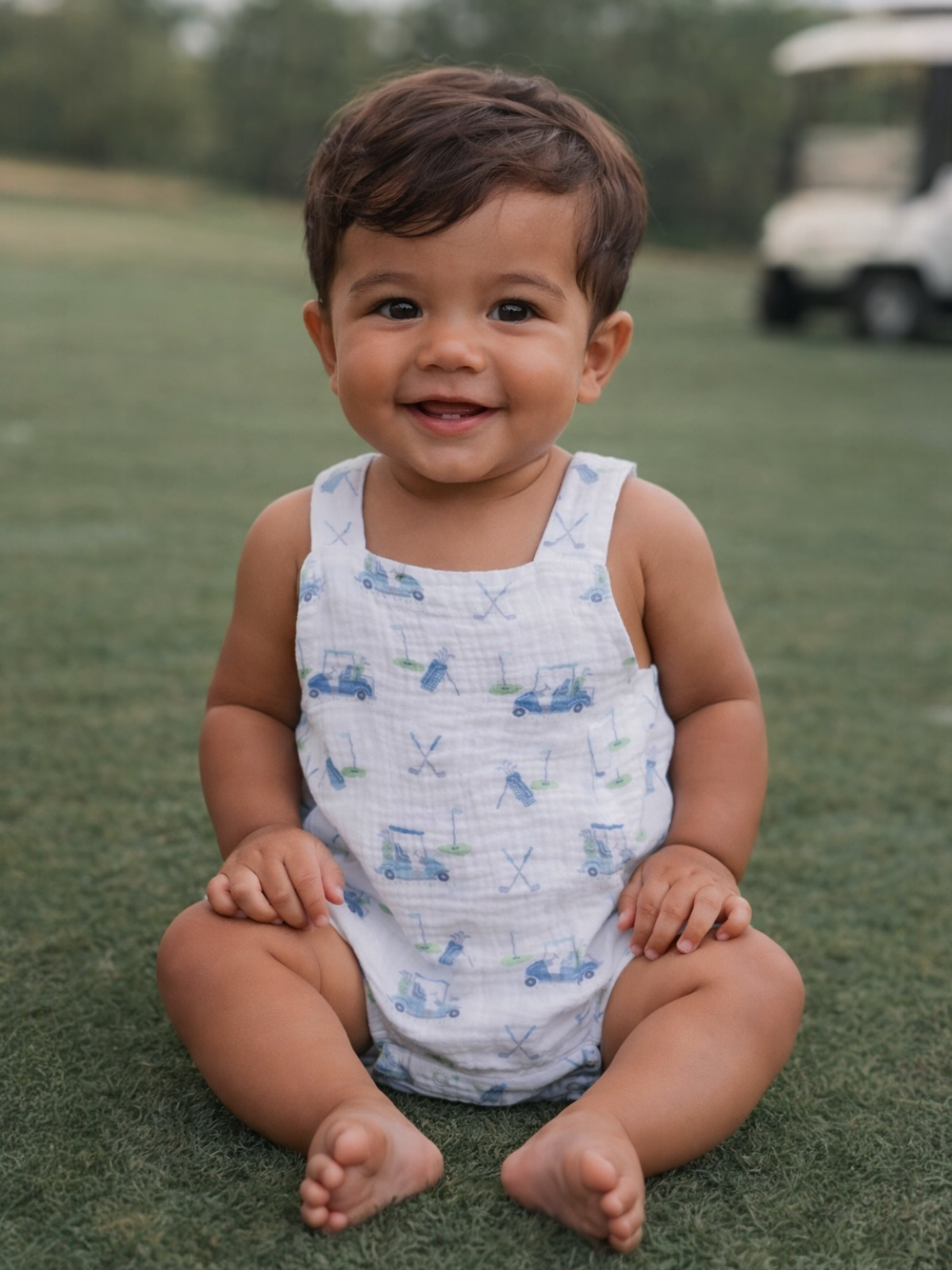 Retro Sunsuit, Baby Golf Cart Blue