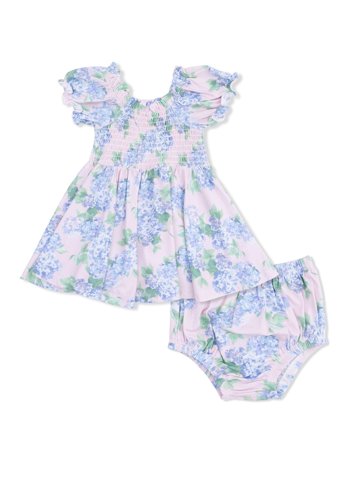 Smocked Twirly Dress and Bloomer, Hydrangeas
