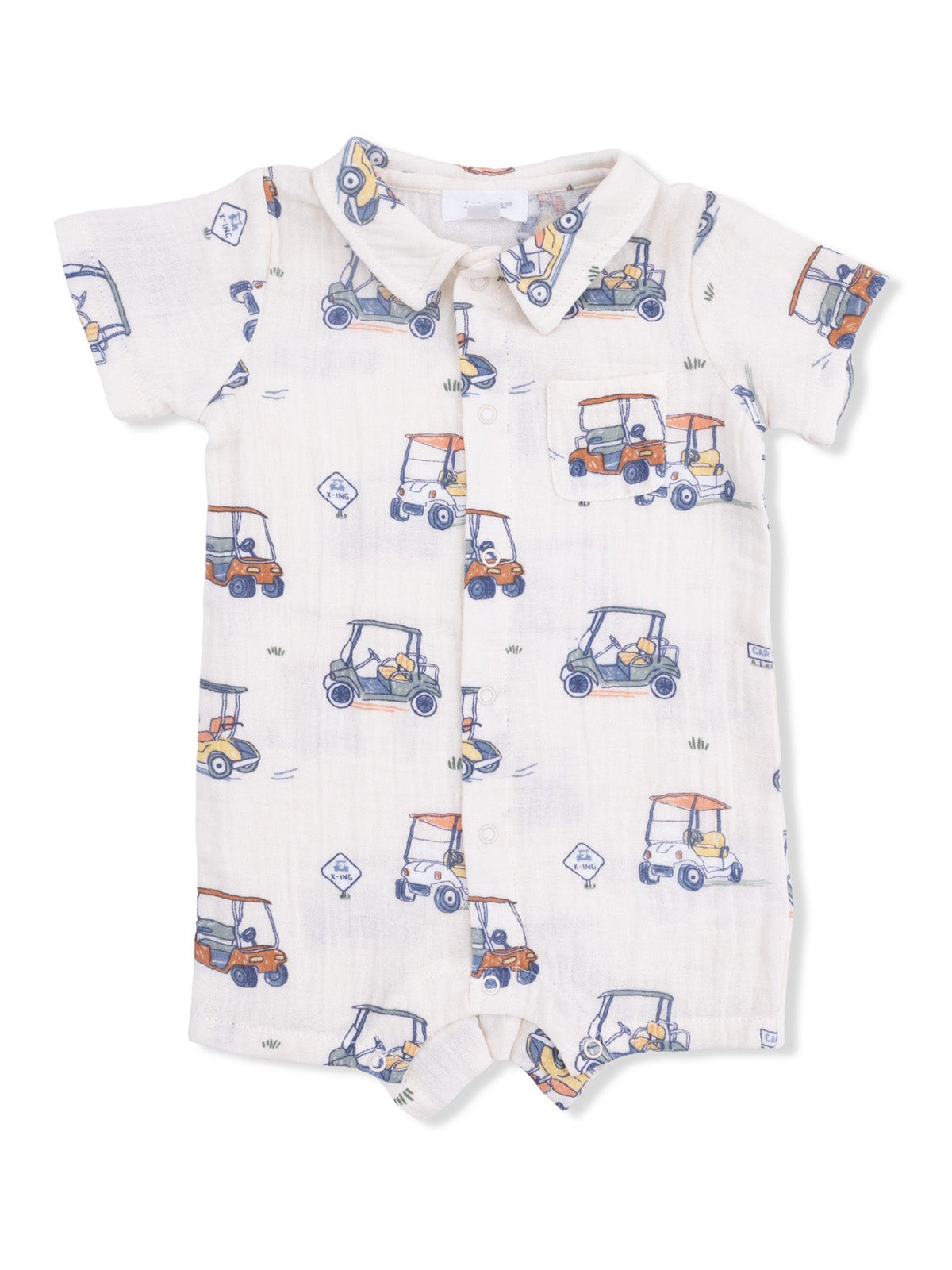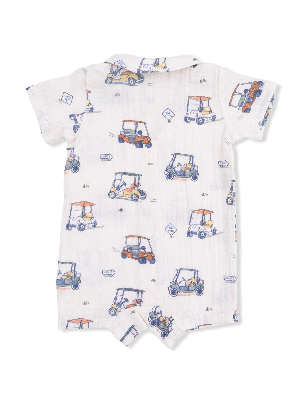 2-Way Zip Romper, Vintage Golf Carts Blue