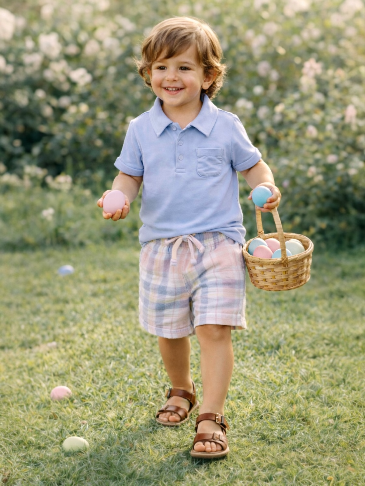 Polo Shirt & Casual Short Set, Dusty Plaid