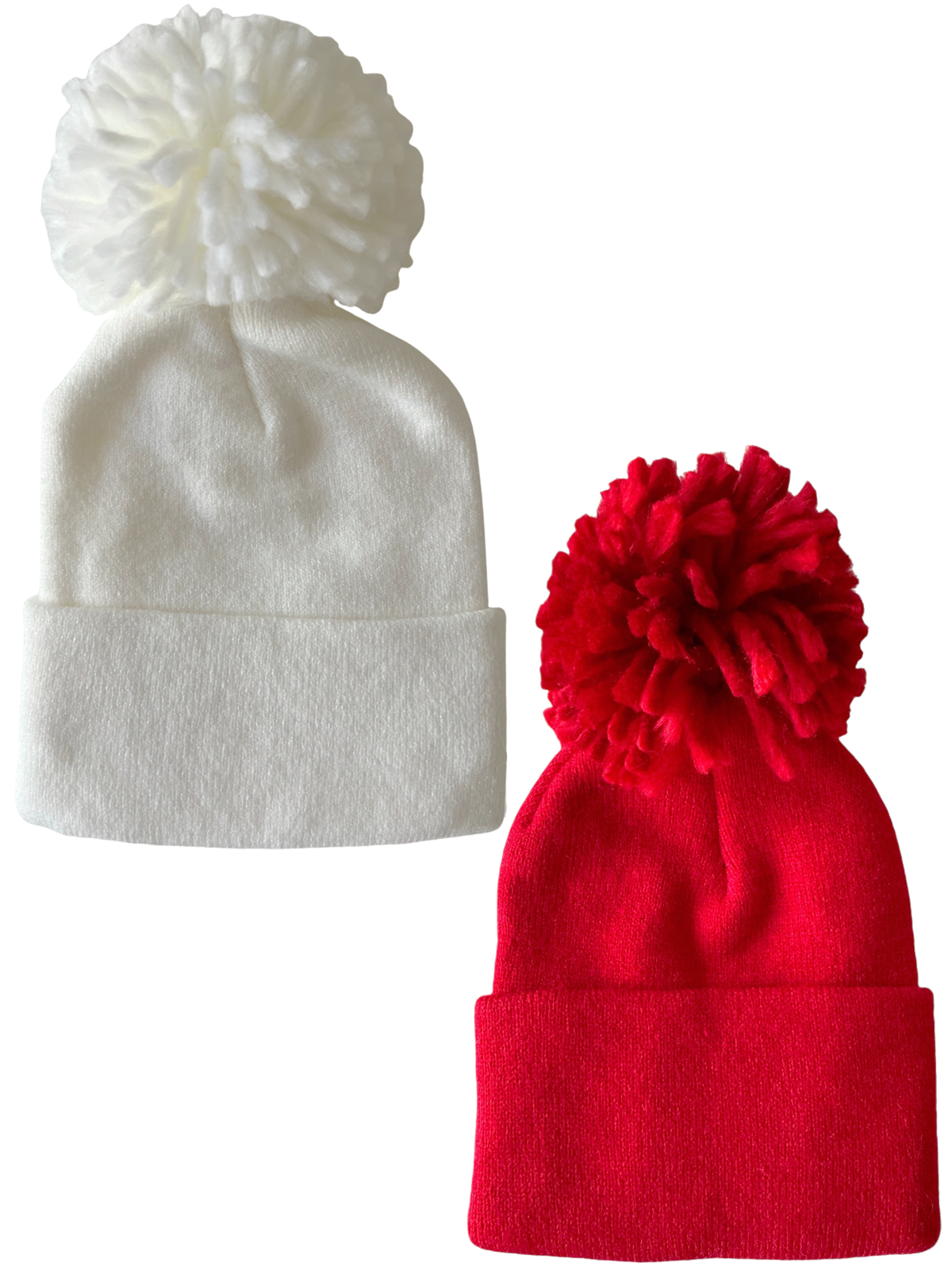 2-Pack Baby's First Hat®, Warm White/Red Pom