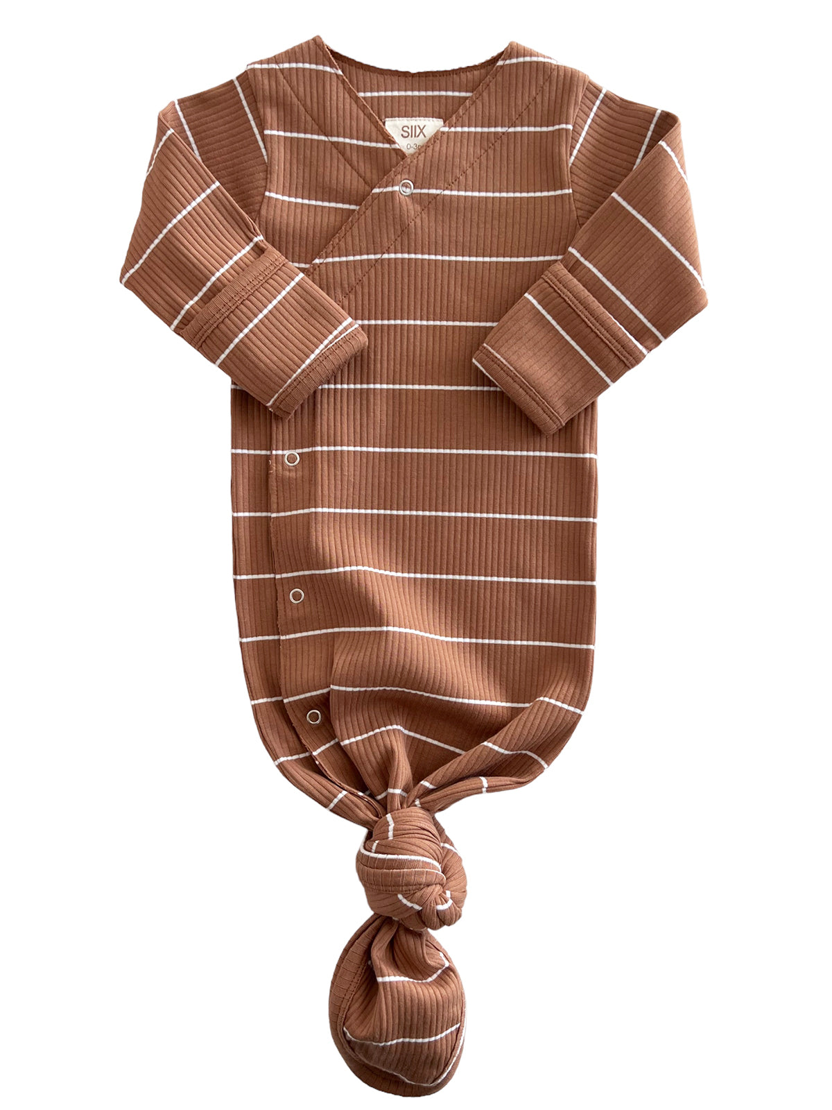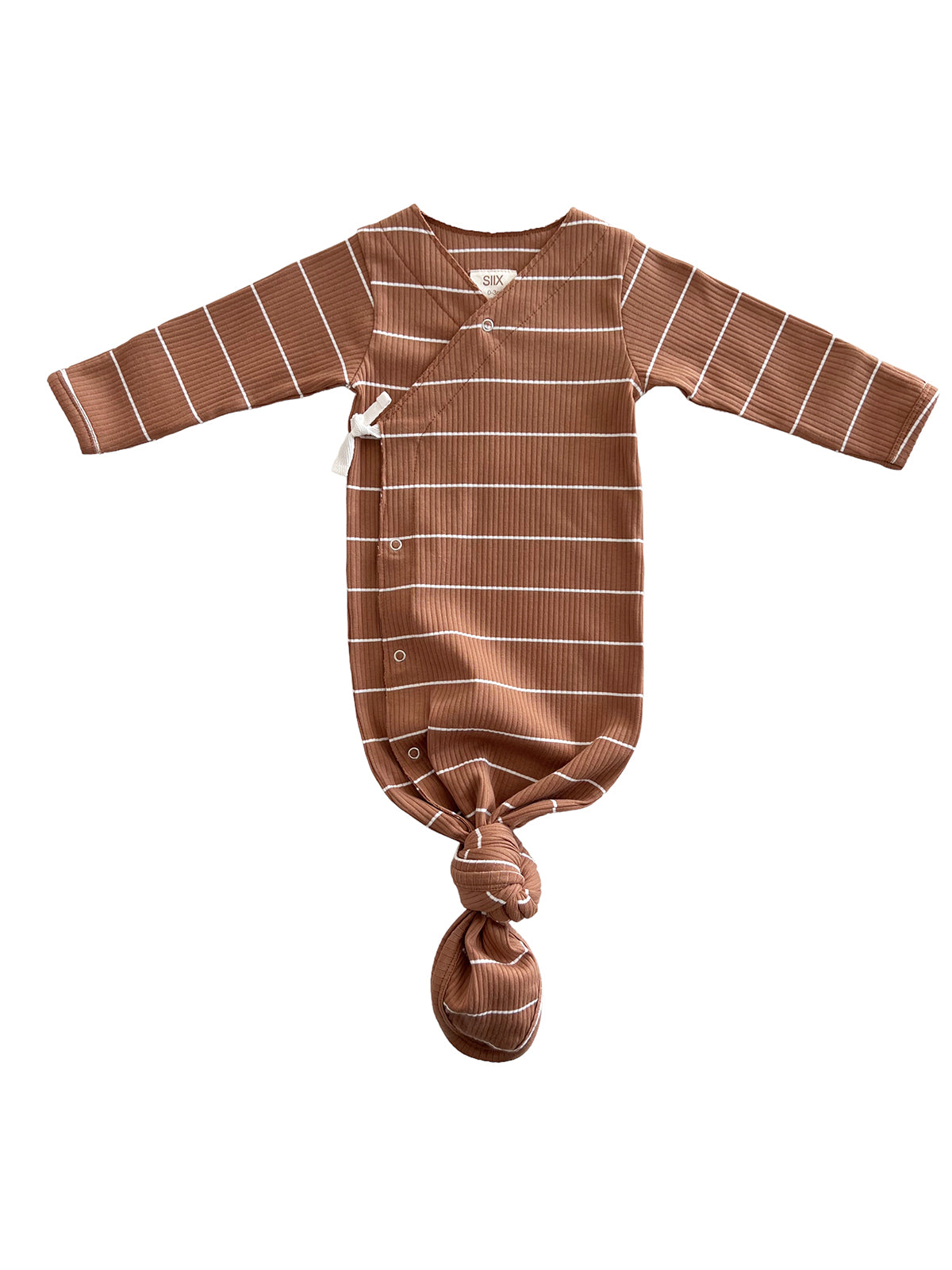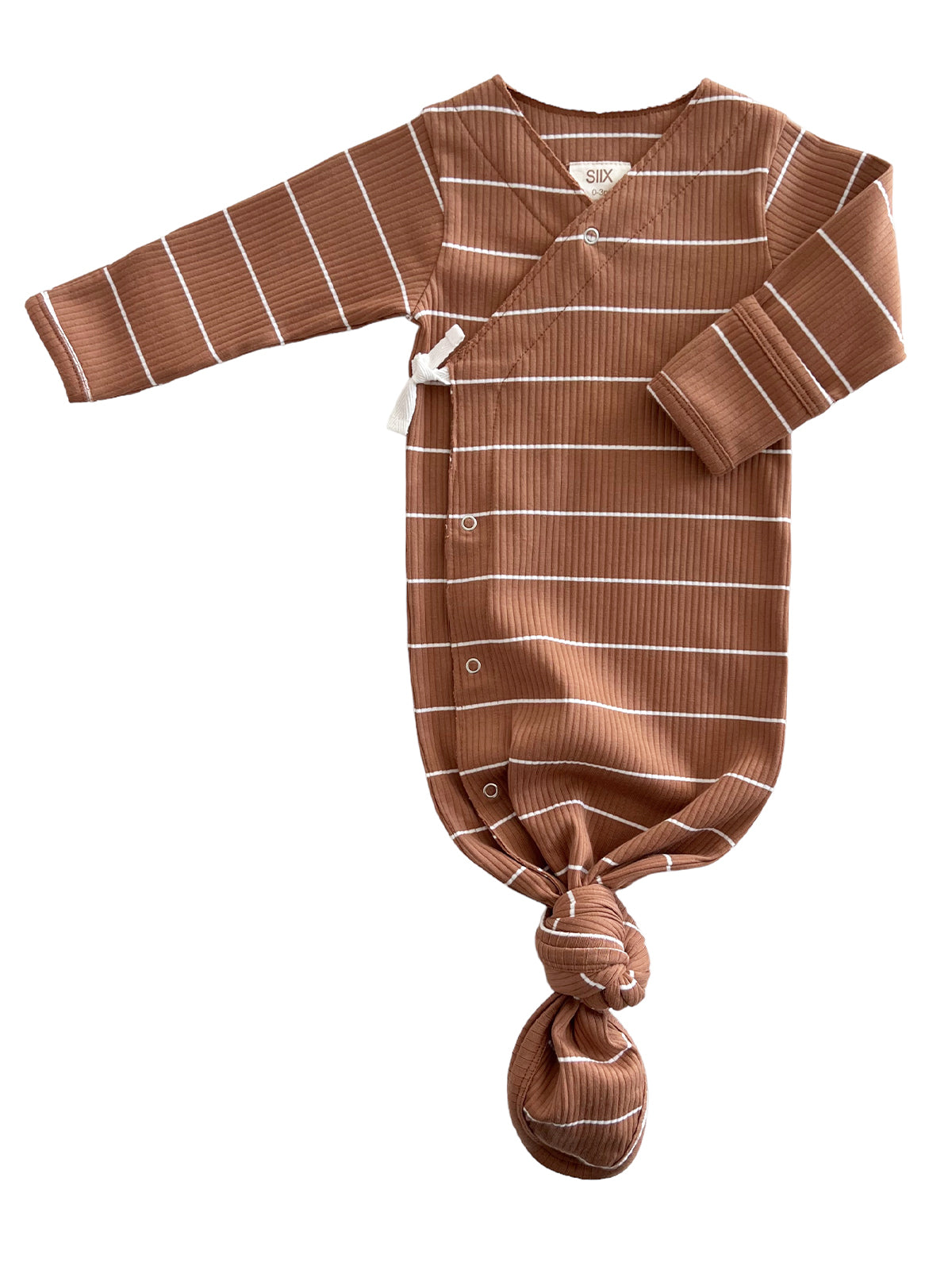 Saddle Stripe / Organic Ribbed Kimono Knot Gown