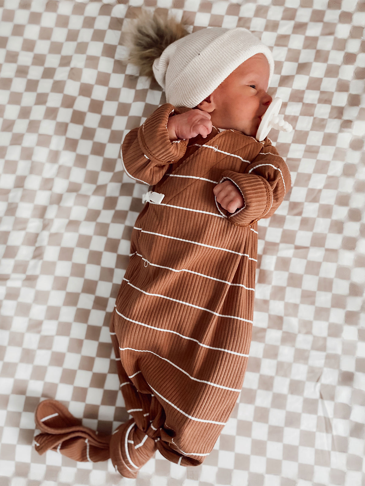 Tan Stripe / Organic Ribbed Long Sleeve Bay Jumpsuit