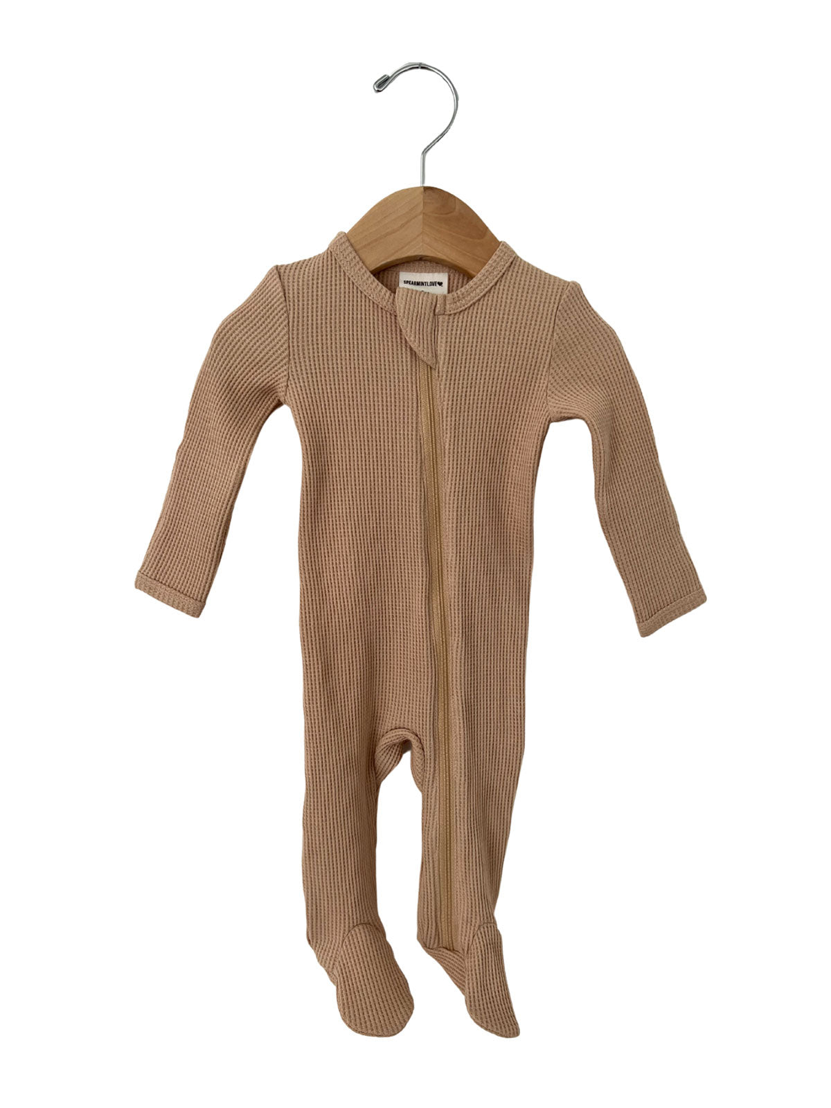 Organic Waffle Ruffle Zip Footie, Forest Green Trees