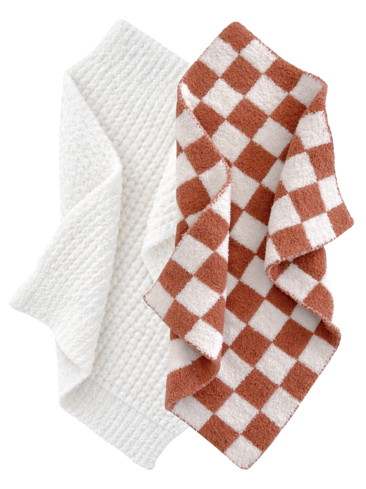 2-Pack Phufy® Bliss Mini Blanket, Nutmeg Checkerboard/Desert Tan Waffle
