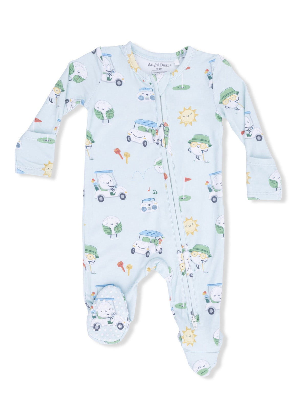 2-Way Zip Romper, Vintage Golf Carts Blue