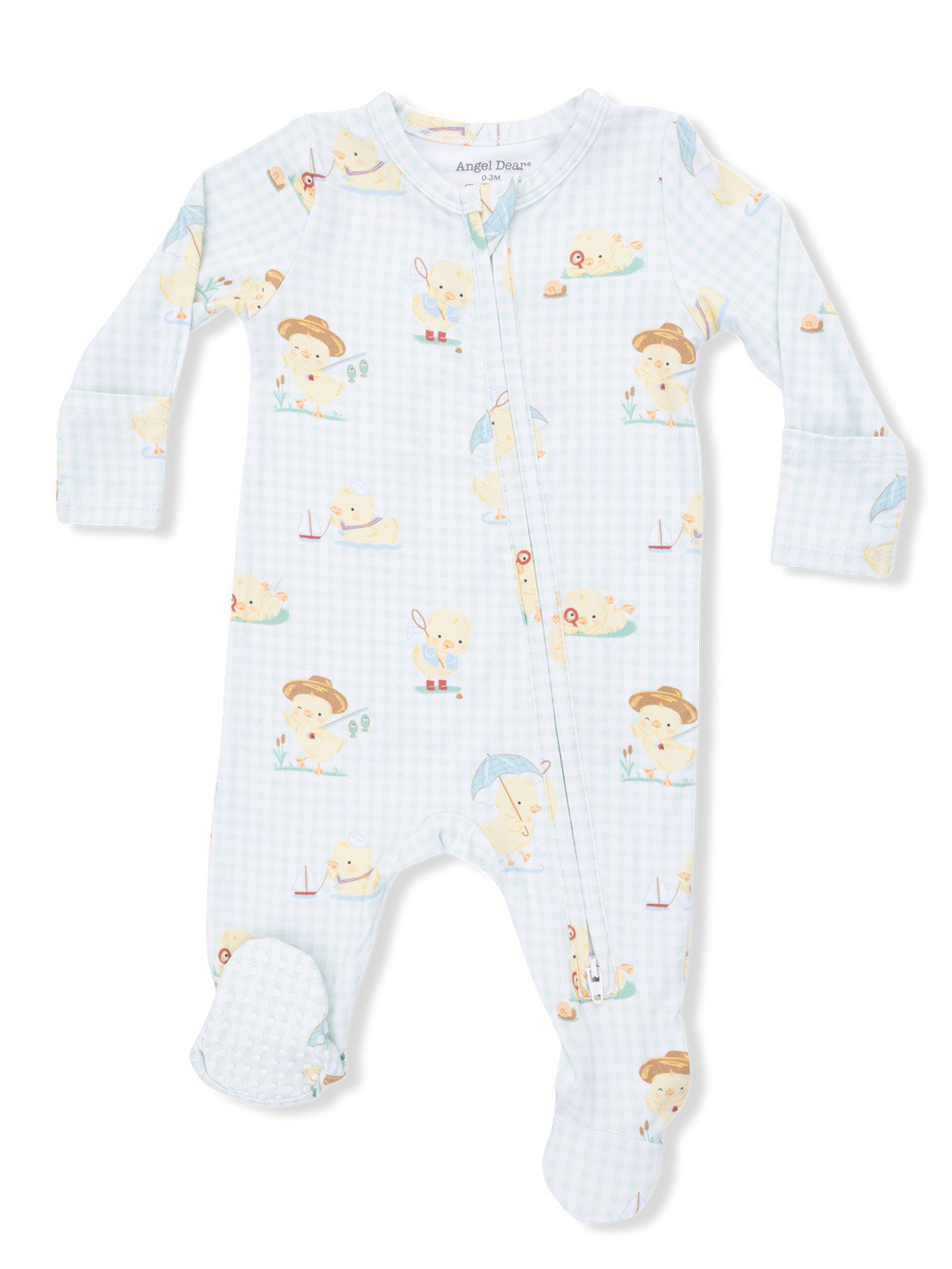 2-Way Zip Footie, Vintage Spring Ducklings Green