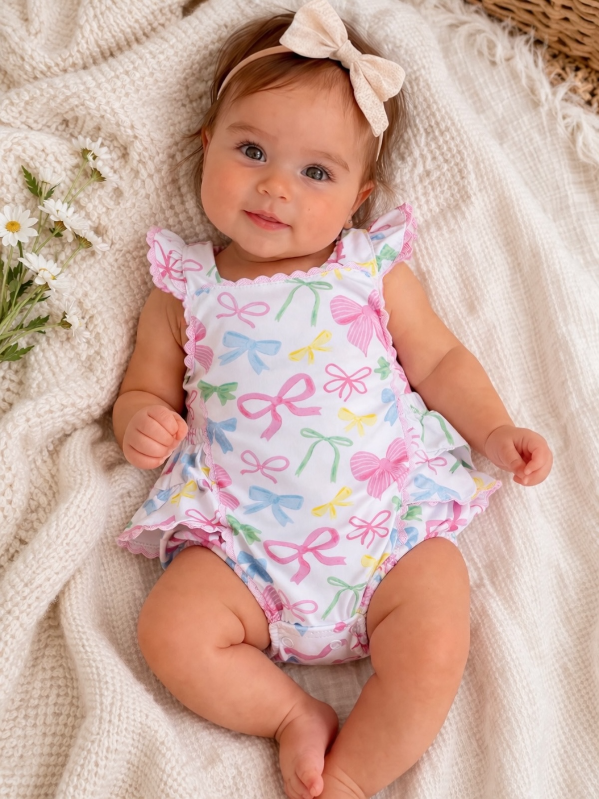 Ric Rac Ruffle Sunsuit, Sweet Bows
