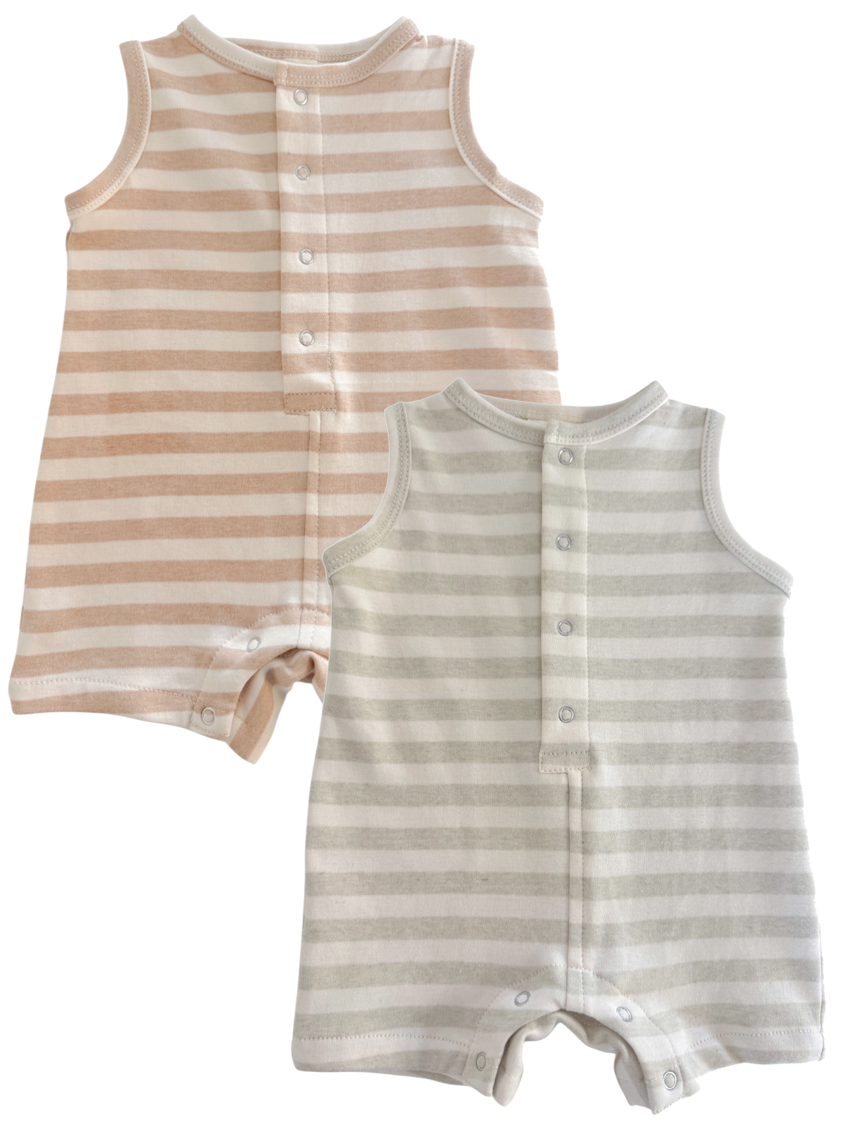 Biscuit Stripe & Sage Stripe / Organic Shortie 2-Pack