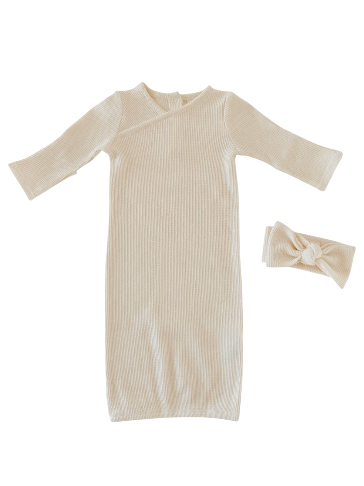 Organic Waffle Gown & Hat Set, Light Blue Moon