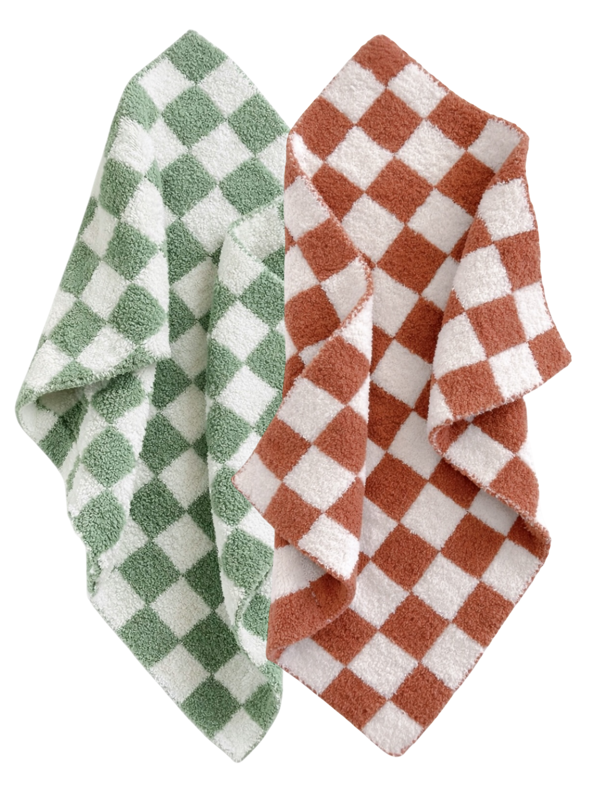 2-Pack Phufy® Bliss Mini Blanket, Nutmeg/Sage Checkerboard