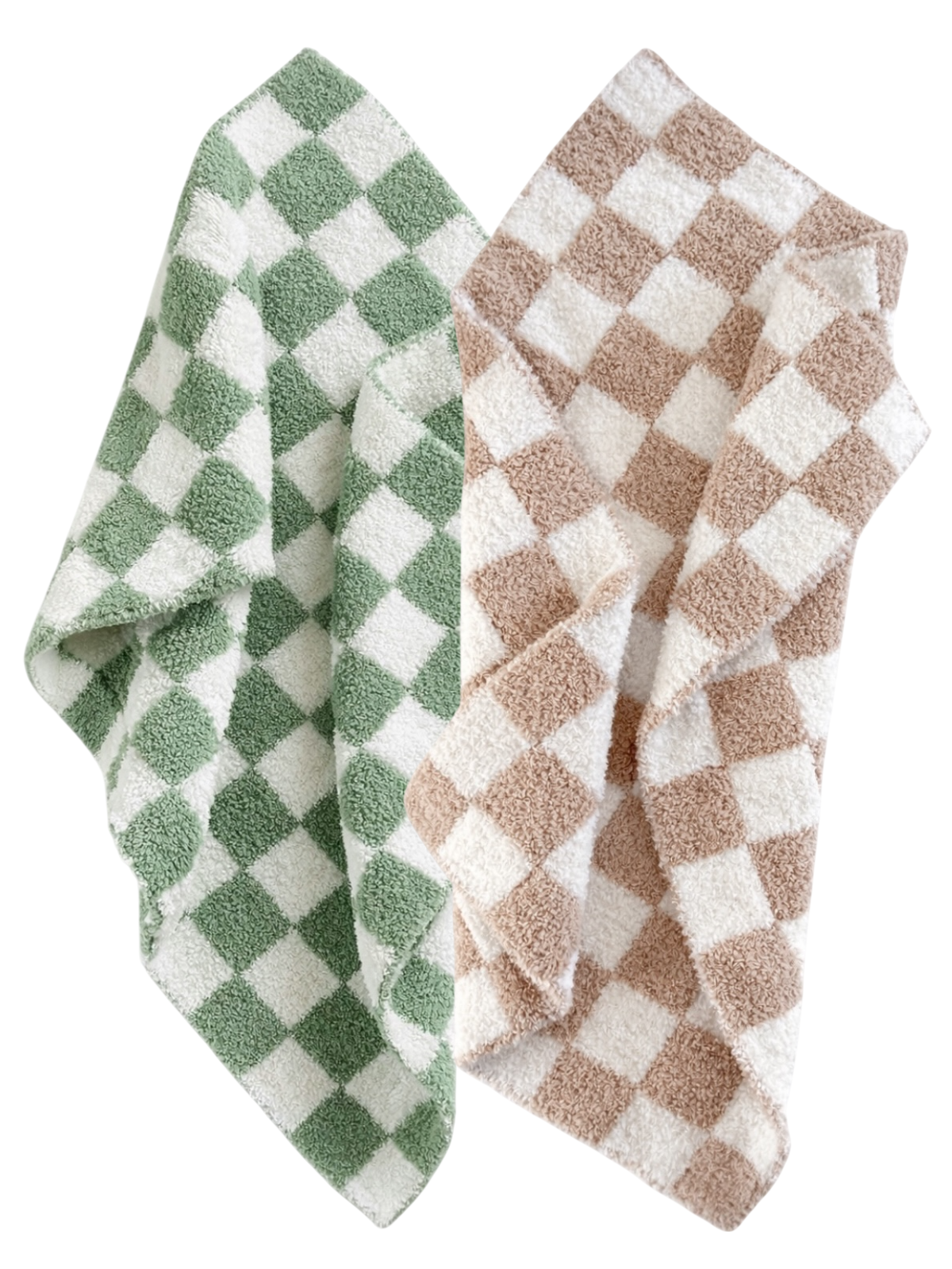 2-Pack Phufy® Bliss Mini Blanket, Sage/Cocoa Checkerboard