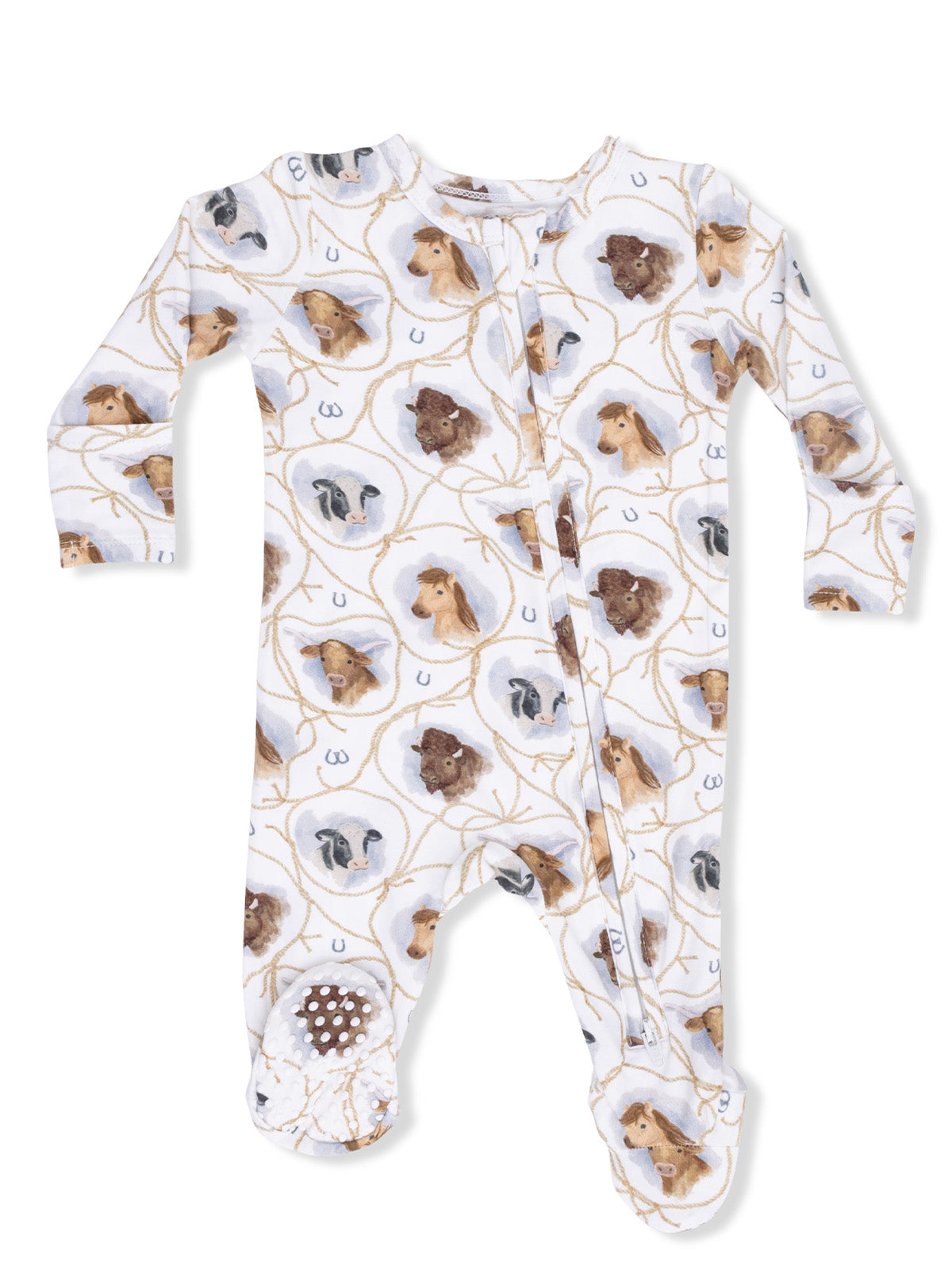 2-Way Zip Footie, Farm Animals Rope Cameos