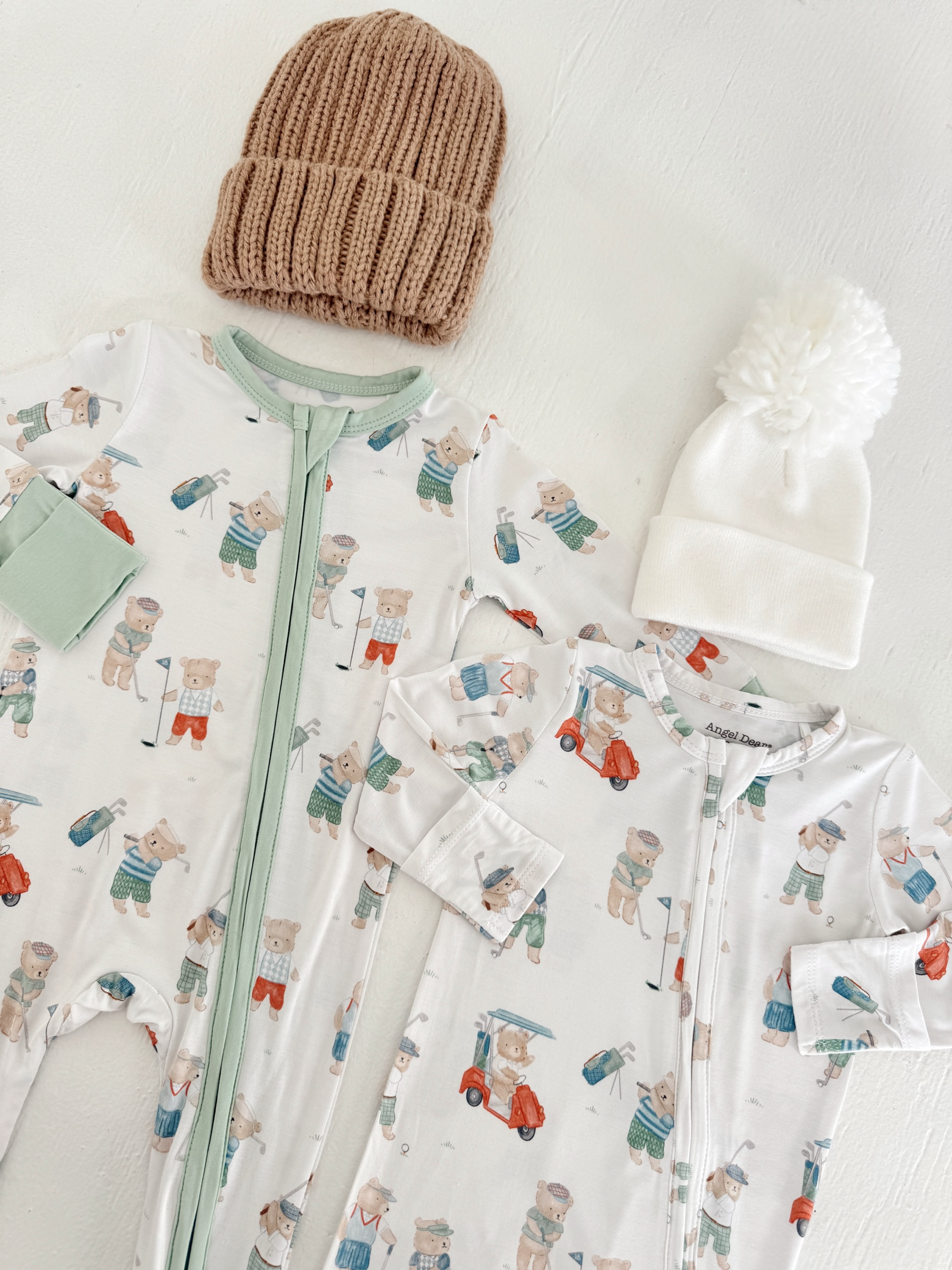 2-Way Zip Romper, Golfing Teddy Bears