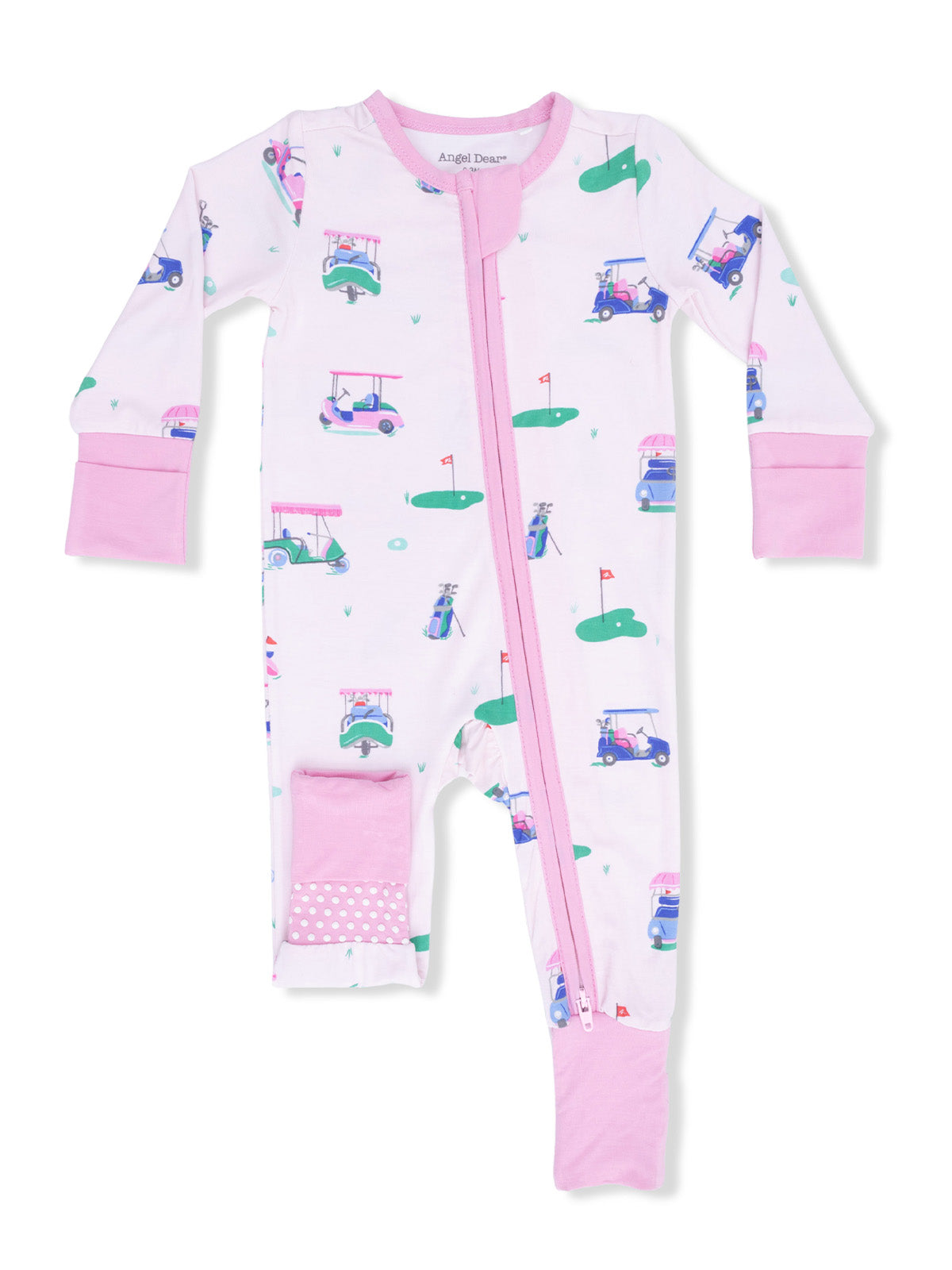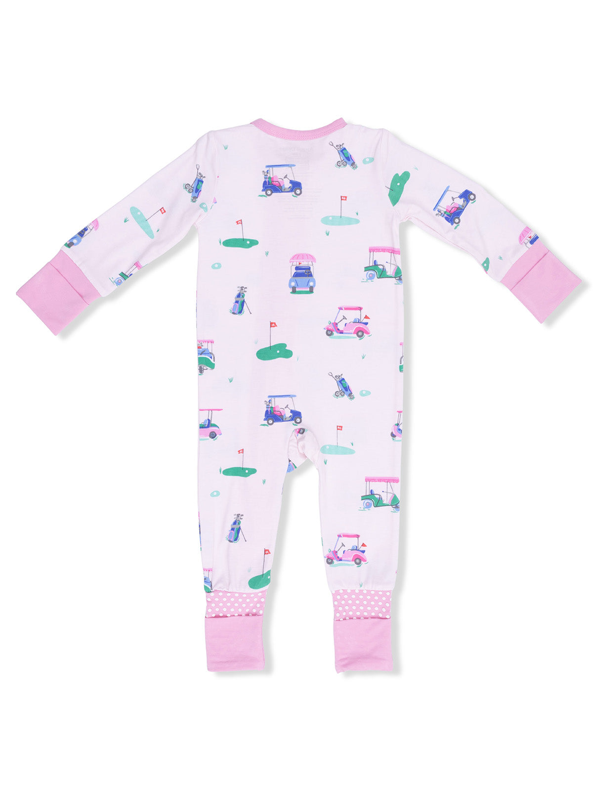 2-Way Zip Romper, Vintage Golf Carts Pink