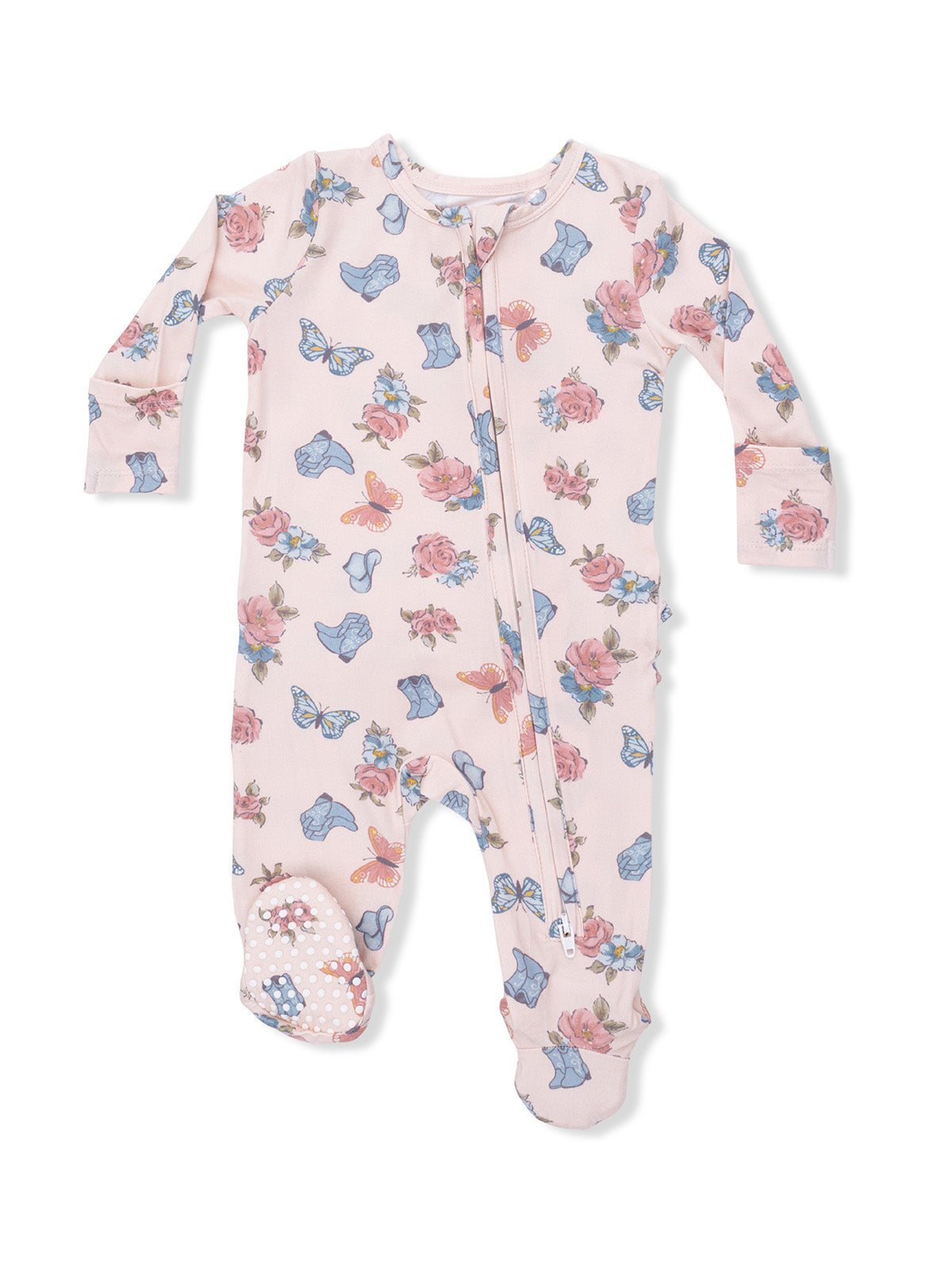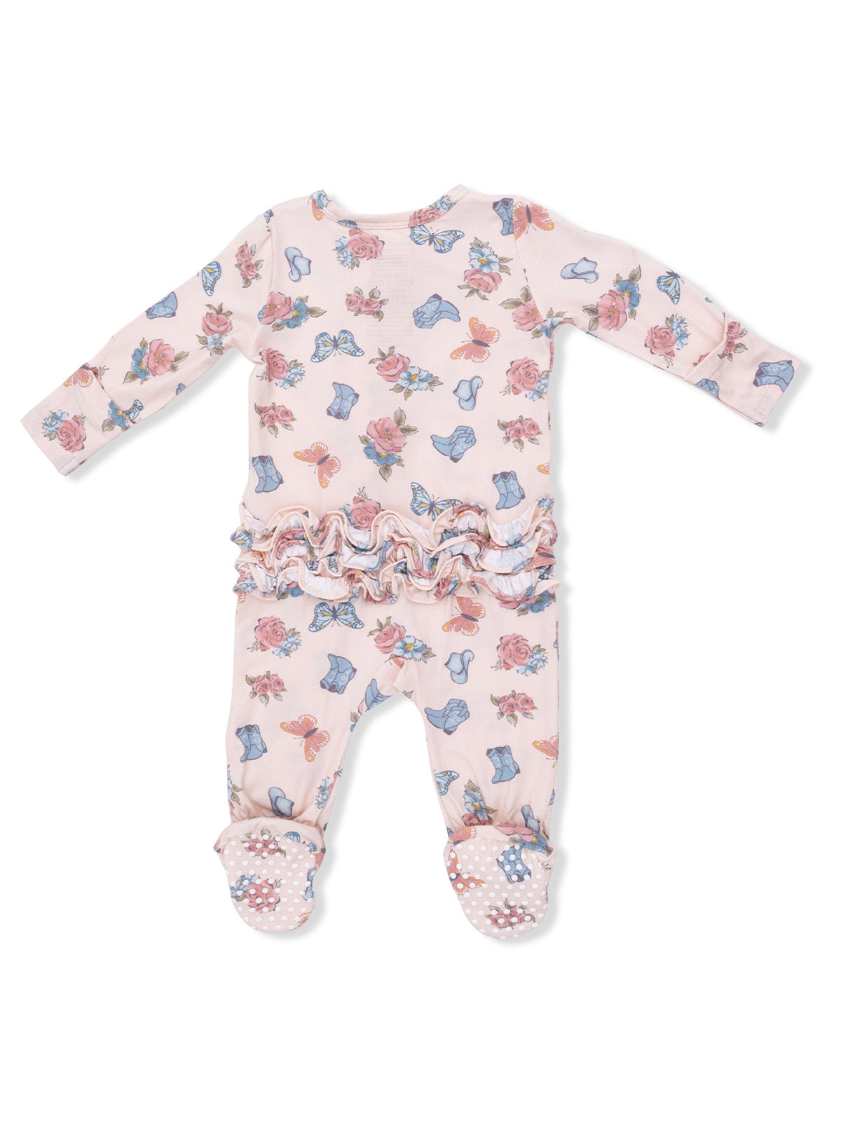 2-Way Zip Ruffle Footie, Country Girl Boots