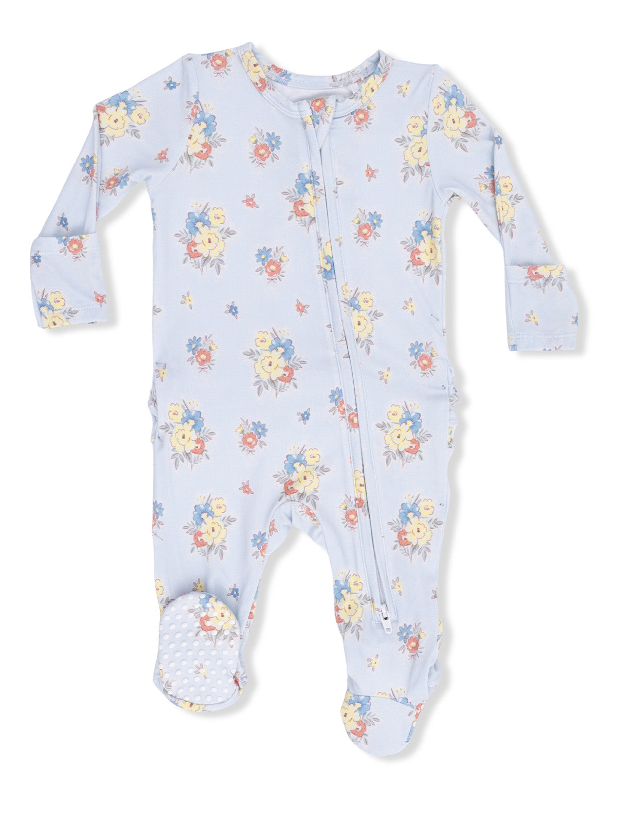 2-Way Zip Ruffle Footie, Country Stitch Floral