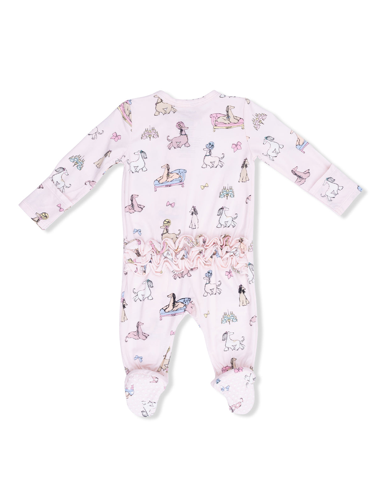 2-Way Zip Ruffle Footie, Fancy Hounds with Bows