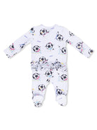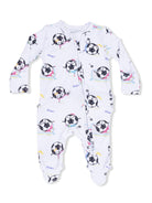 2-Way Zip Ruffle Footie, Soccer Balls Playing Soccer Pink