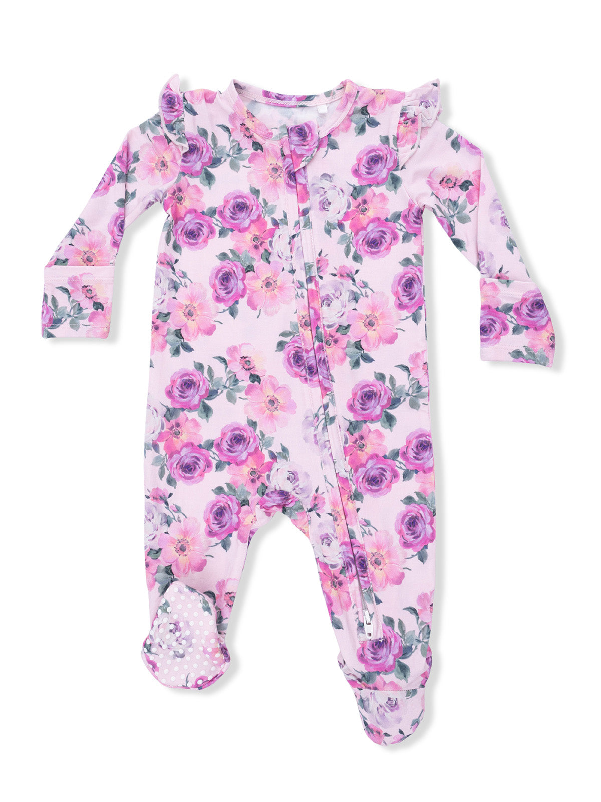 2-Way Zip Ruffle Sleeve Footie, Rose Abundance