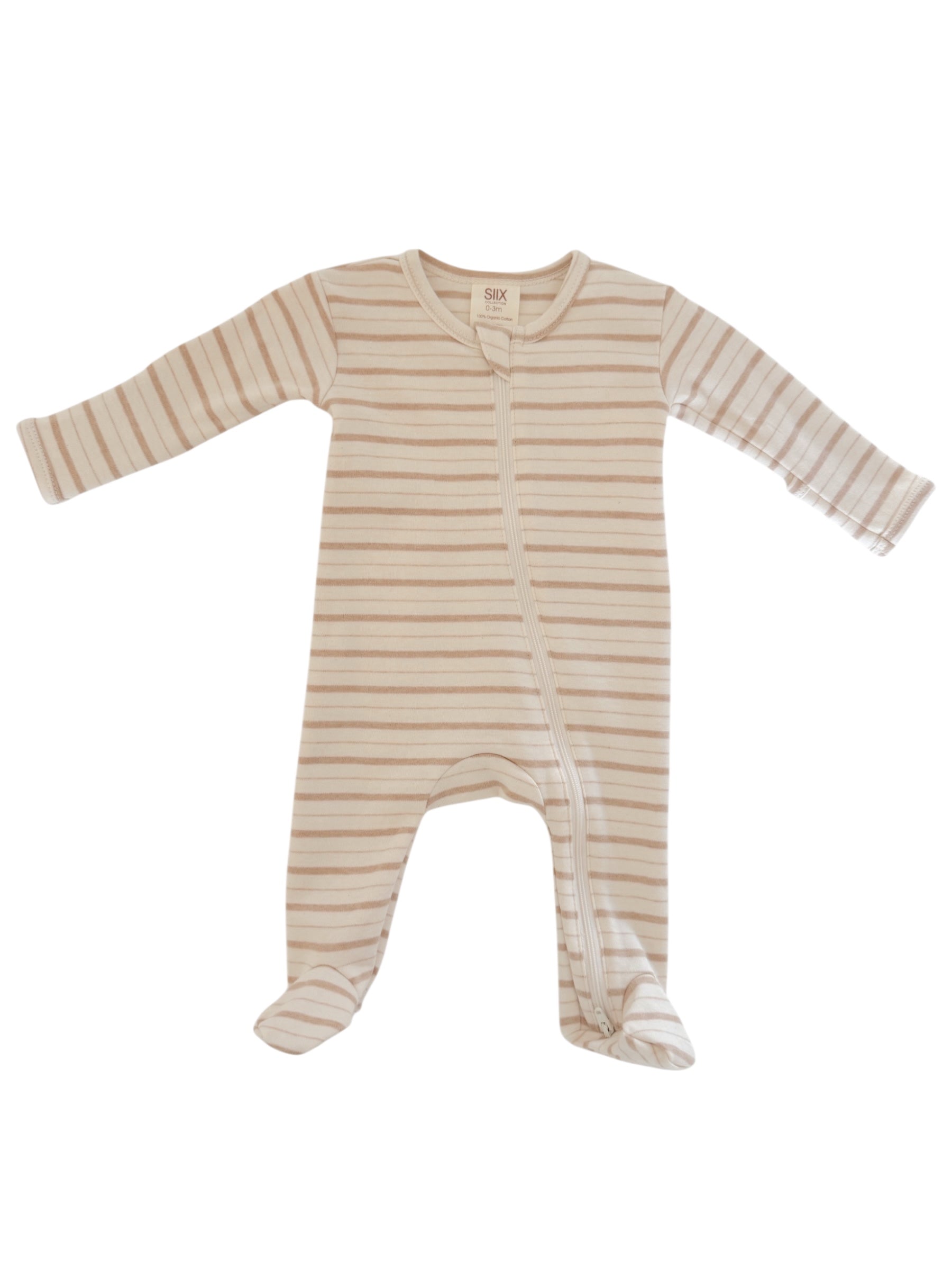 Biscuit Mixed Stripe / Organic 2-Way Zip Footie