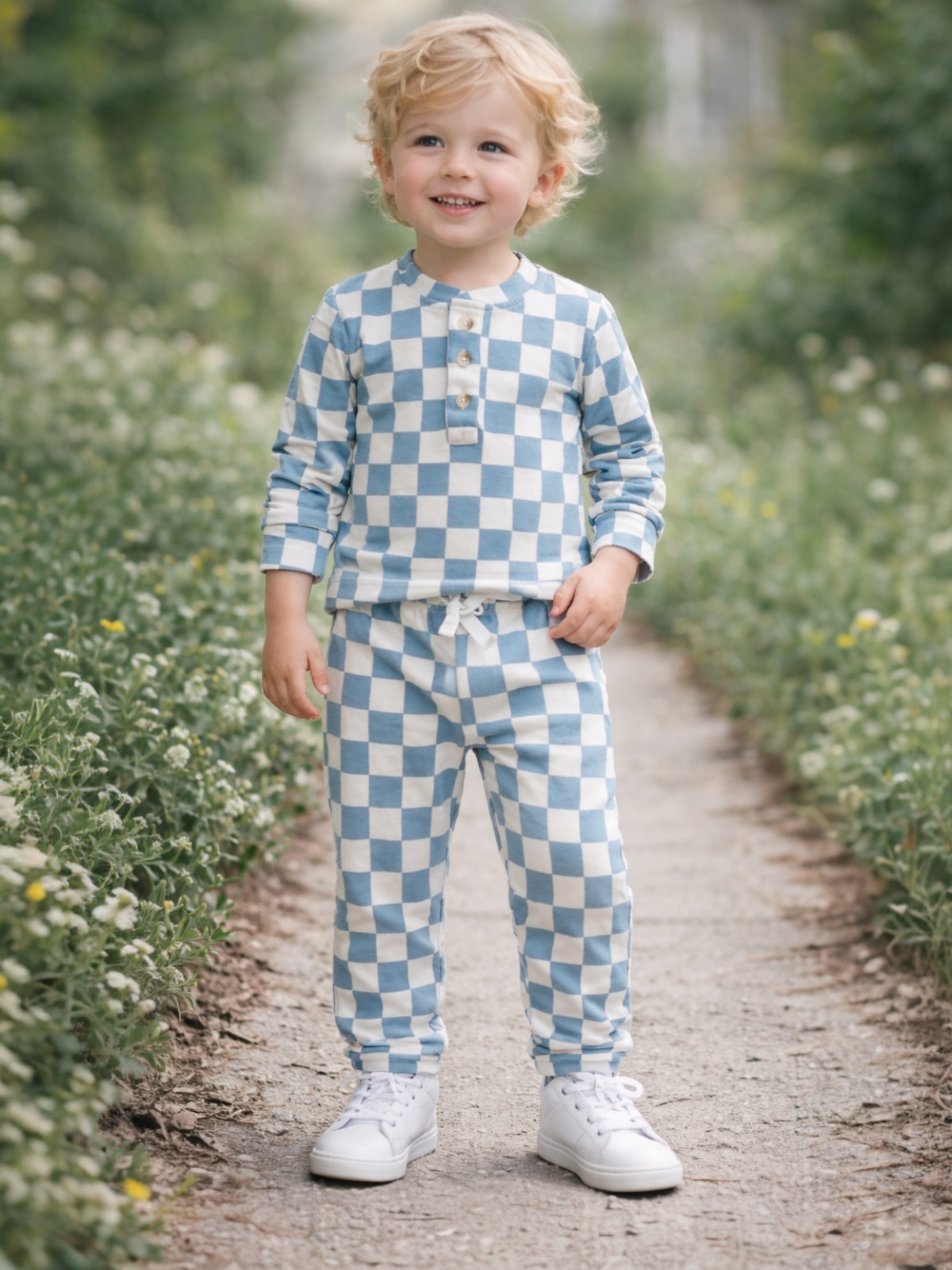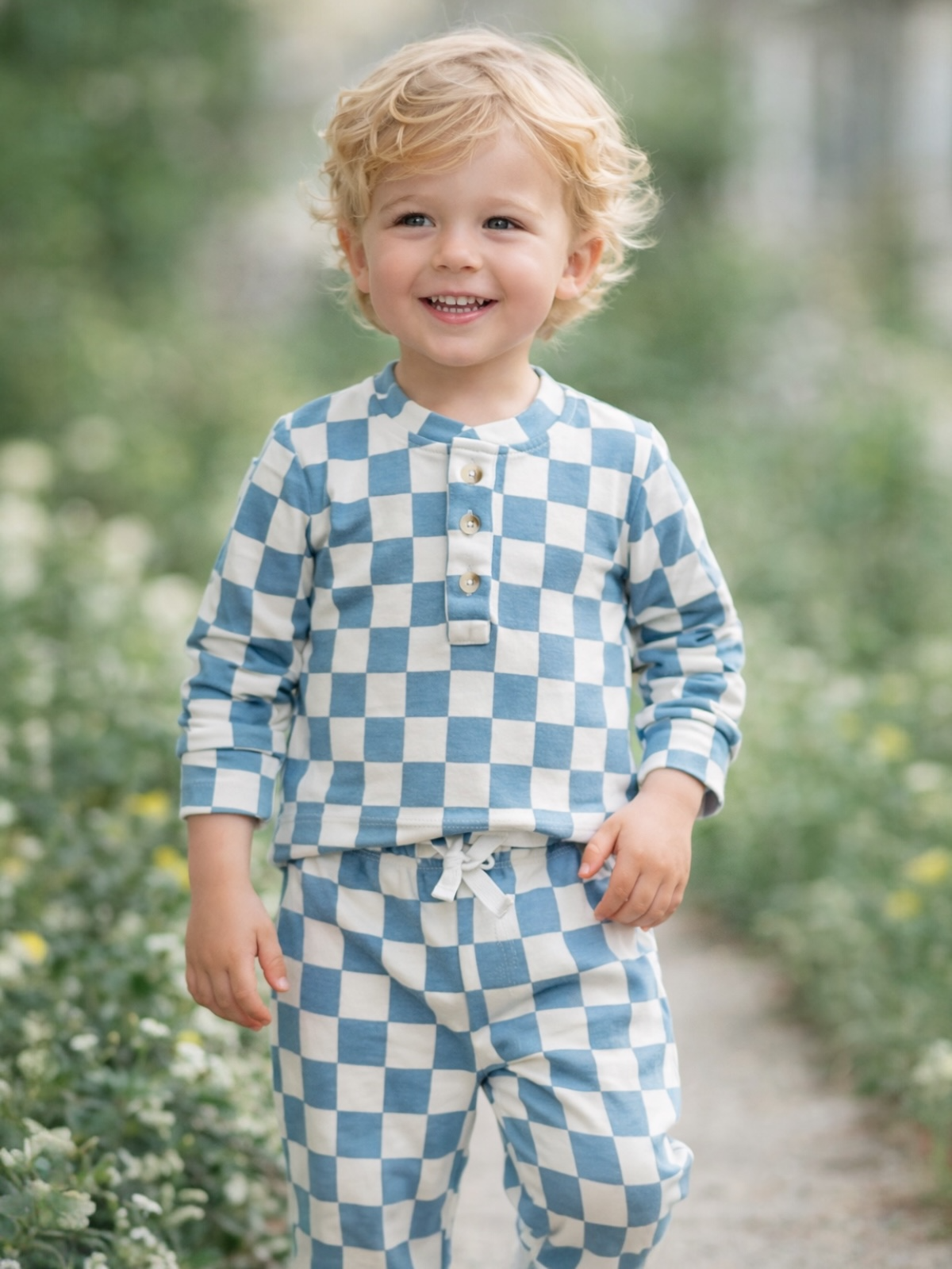 Blueberry Muffin Checkerboard / Organic Wells Top + Pant Set