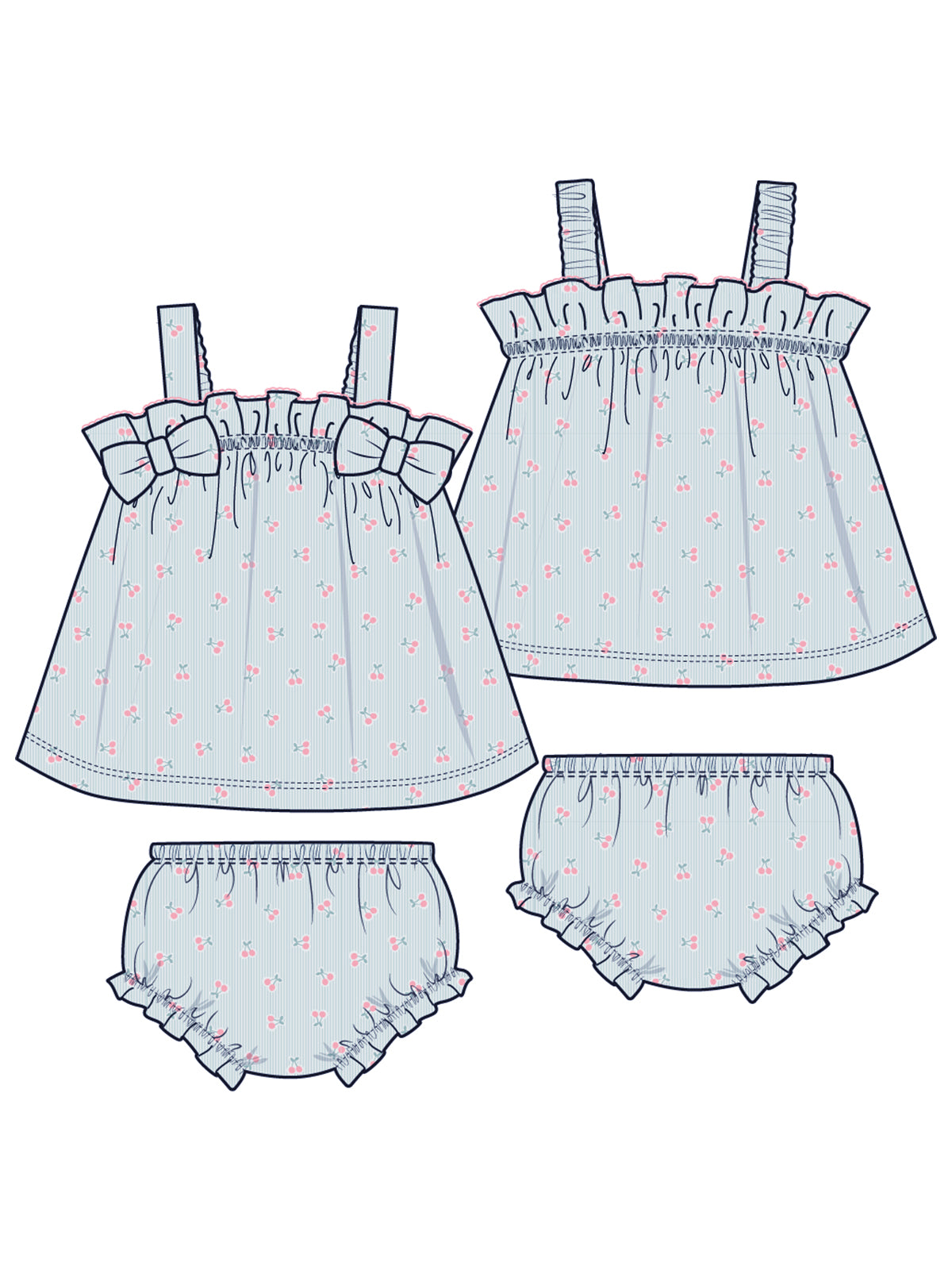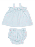 Bow Top & Ruffle Leg Bloomer, Tiny Cherry Stripe