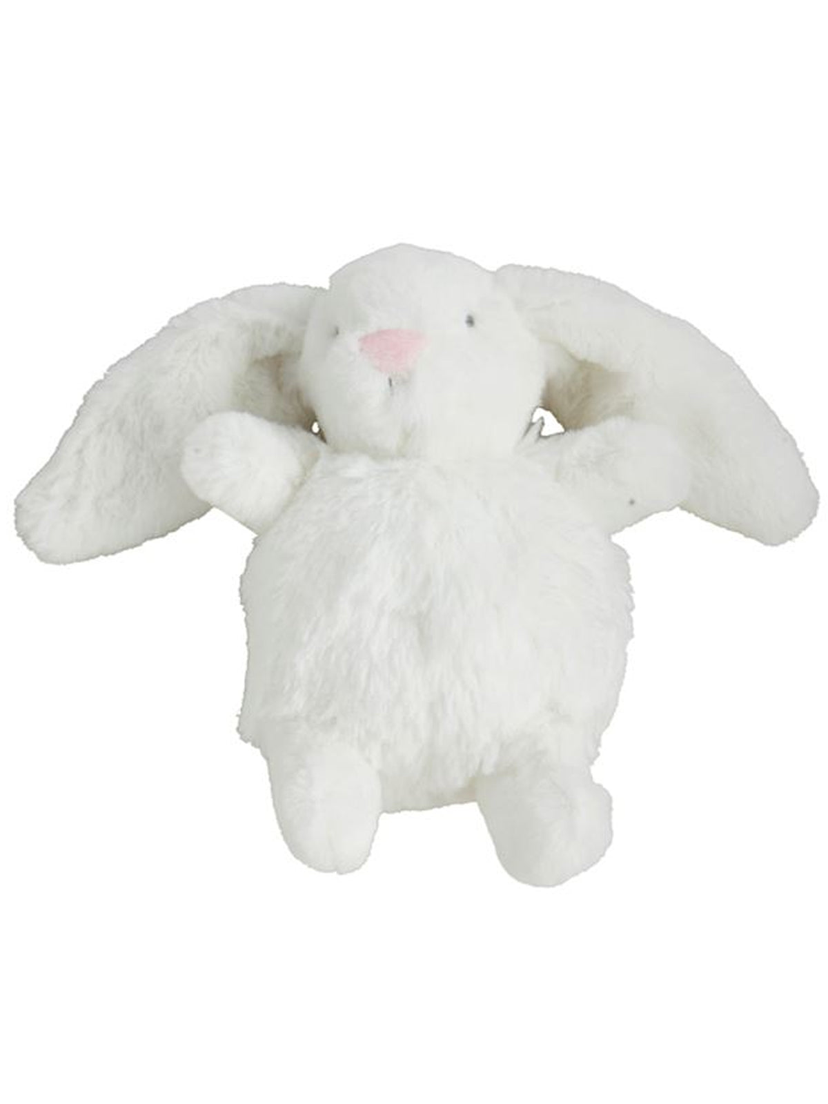 Celebrate Easter with our enchanting bunny pom pom rattle! This faux fur mini plush bunny features a rattle with weighted seat.