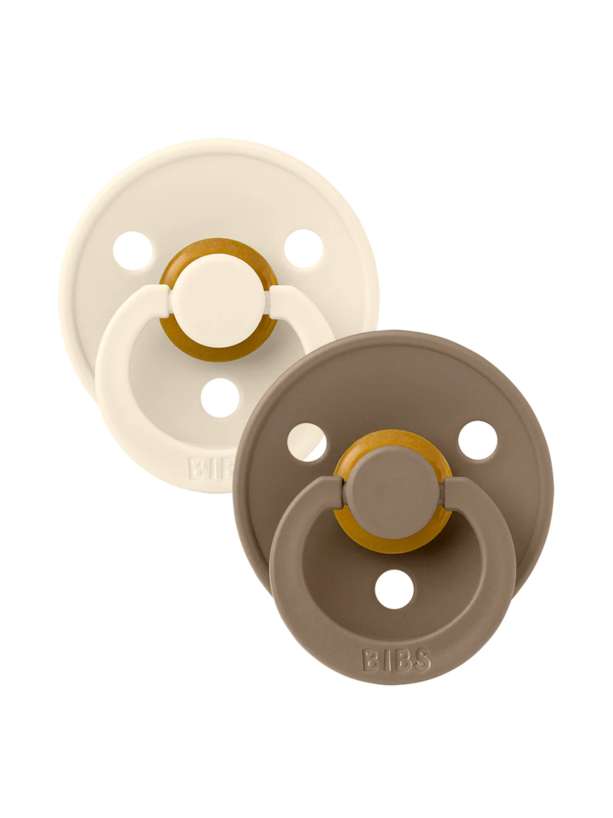 Colour Round Natural Rubber Latex Pacifier 2 Pack, Ivory/Dark Oak