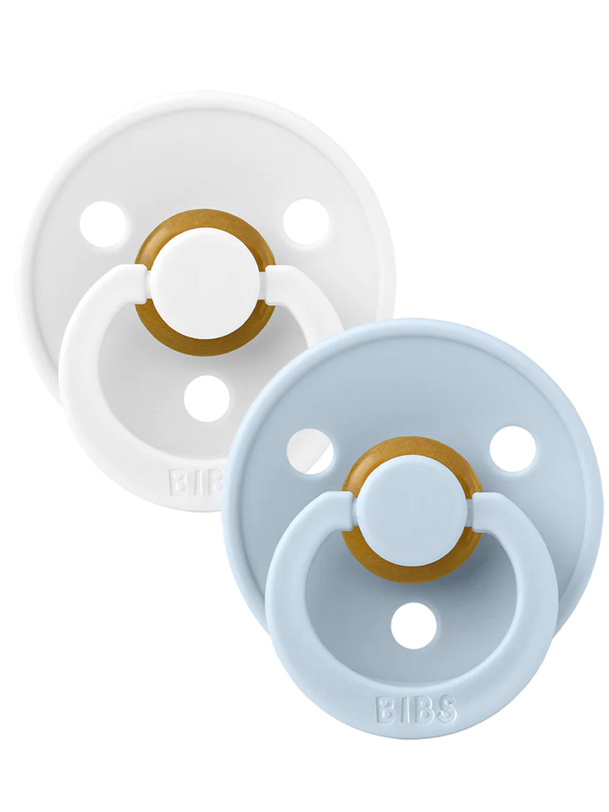 Colour Round Natural Rubber Latex Pacifier 2 Pack, White/Baby Blue