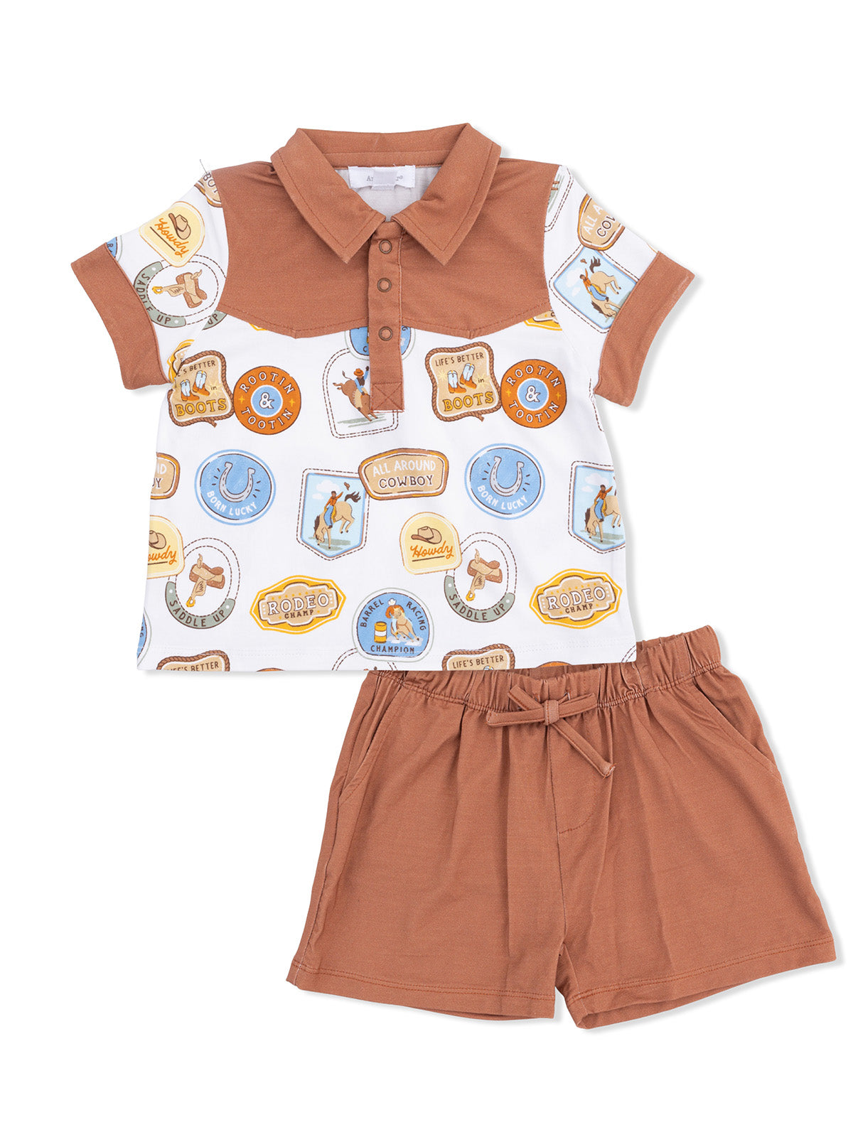 Cowboy Polo & Casual Short Set, Rodeo Patches