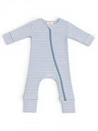 Dusty Blue Stripe / Ribbed 2-Way Zip Romper