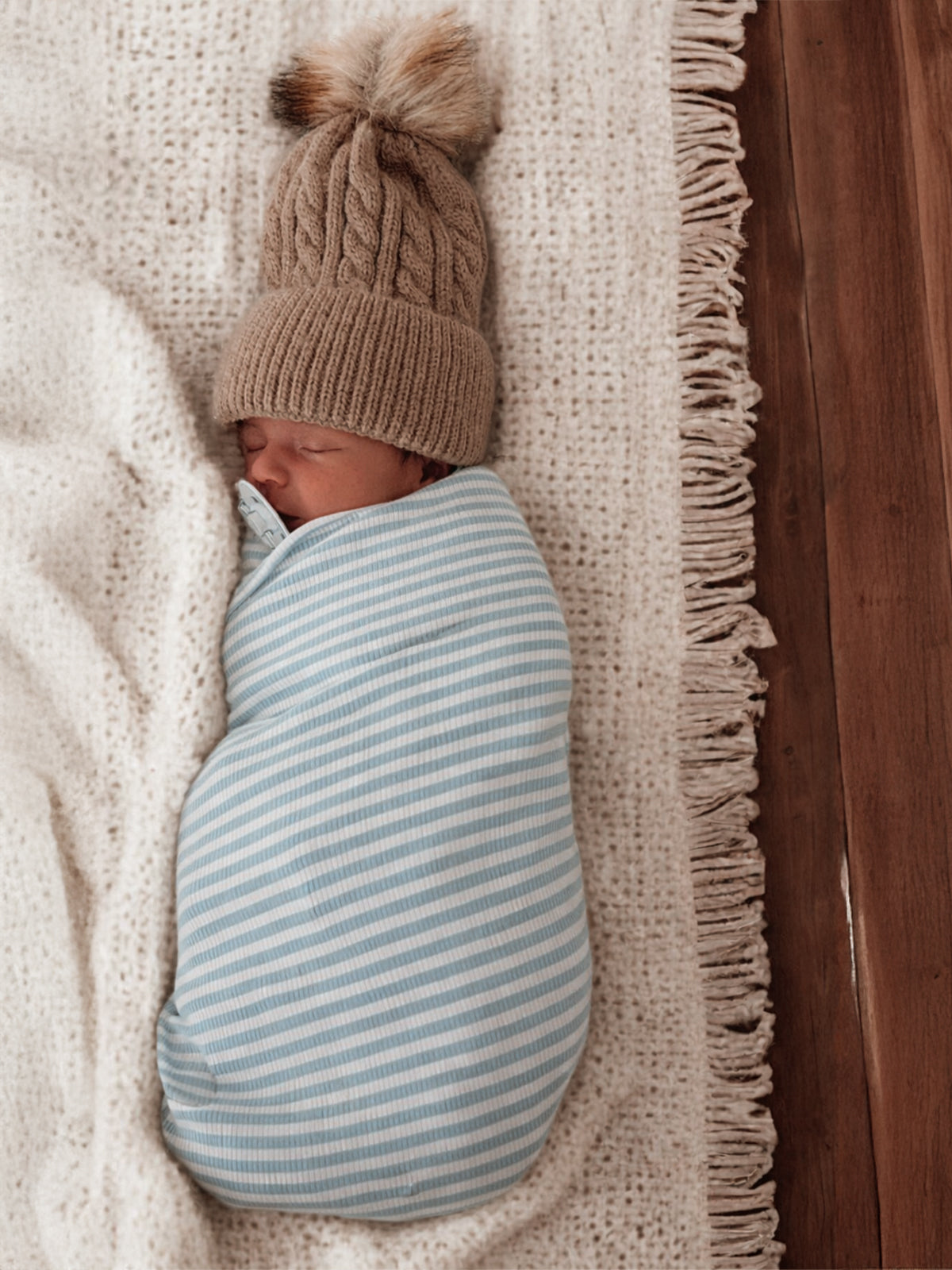 Dusty Blue Stripe / Ribbed Swaddle