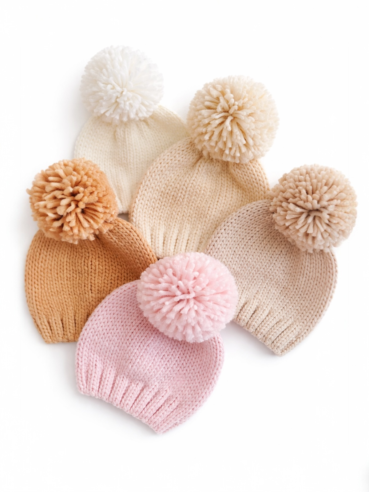 Jumbo Pom Knit Hat, Tan