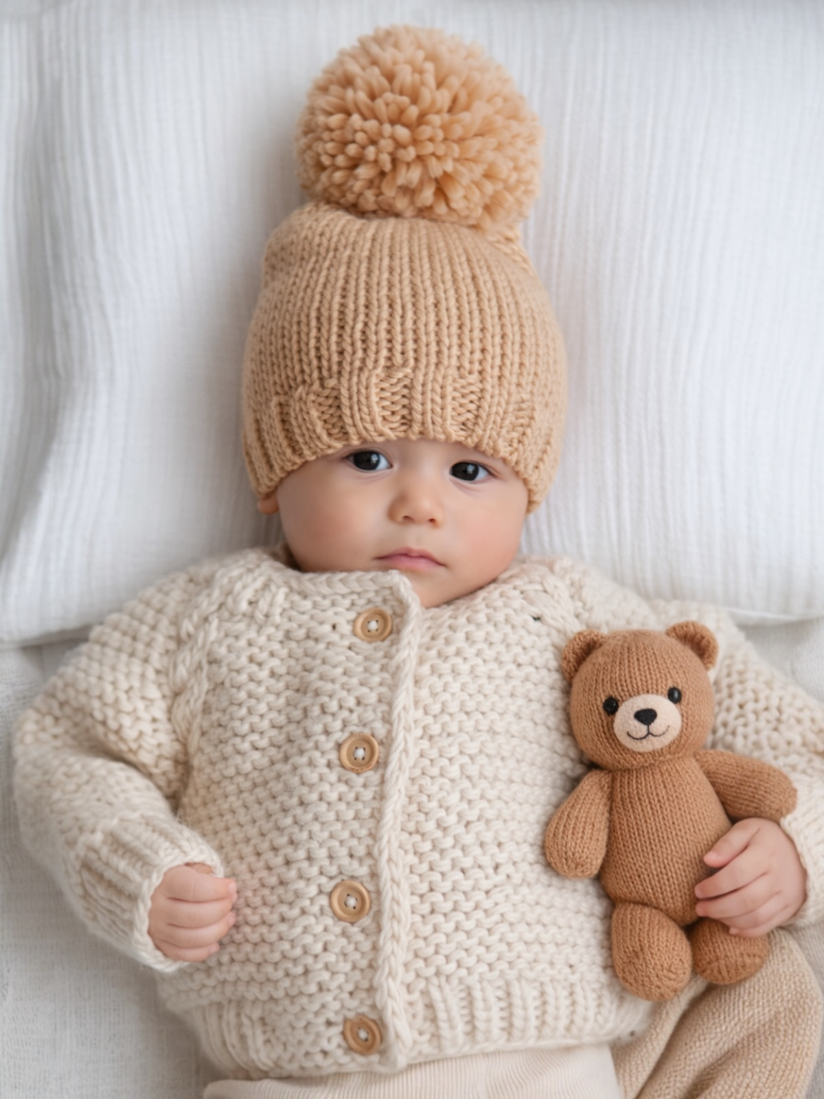 Wrap your little one in warmth and style with our adorable baby knit hat! Crafted from 100% acrylic, this cozy accessory features an oversized jumbo pom pom on top, adding a playful touch to any outfit. Perfect for chilly days, it’s hand washable for easy care—simply lay flat to dry. Keep your baby's head snug and fashionable with this charming knit hat.